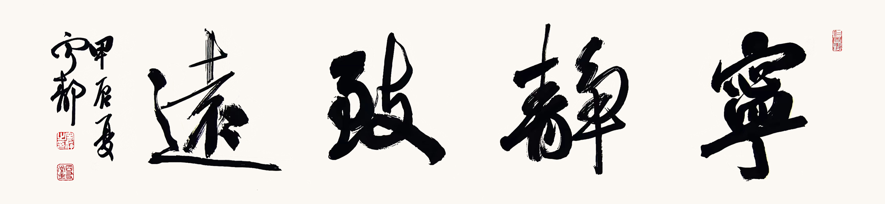 宁静自幼酷爱书法,禀承家学,六岁跟随其父亲学习楷书。2005年毕业于北京首都师范大学书法专业,经过书法泰斗沙曼翁先生,著名书法家张海、苏士澍、欧阳中石、沈鹏、唐思领等大家的亲自指导,五体兼修,其行书师法二王,兼得米芾、王铎、何绍基笔意。草书以孙过庭书谱、大观帖为基础,兼修张旭、怀素、黄庭坚,数十年如一日,笔耕不辍,融百家之所长,自成新风。他站在古代与当代,东方与西方,地域与时空交辉的历史坐标点,外师造化,中得心源,总能在其方寸之间神思妙悟、巧夺天机,其作品以行草书与楷书见长。行草书开合有度,浓淡干湿,风樯阵马,楷书融晋唐风韵为一炉,章法新奇,天资神纵,即有唐楷法度之严谨,又承魏晋洒脱之遗风。