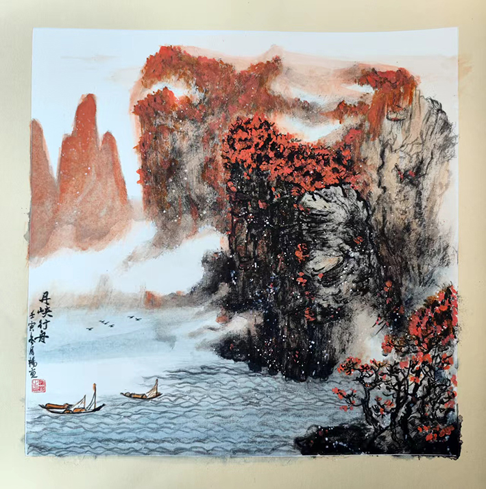 作为山西省孝义市书画家协会会员,他于书画领域均有涉猎。其山水画风格与恩师一脉相承,以阳刚激越、气势磅礴为主要特色,尤擅通过精细刻画山石肌理构建画面意境,构图上注重整体布局与层次感的把控,使画面空间呈现出深邃广阔的视觉效果,兼具山水的雄浑与烟云的神秘。作为青年一代书画家未来可期。