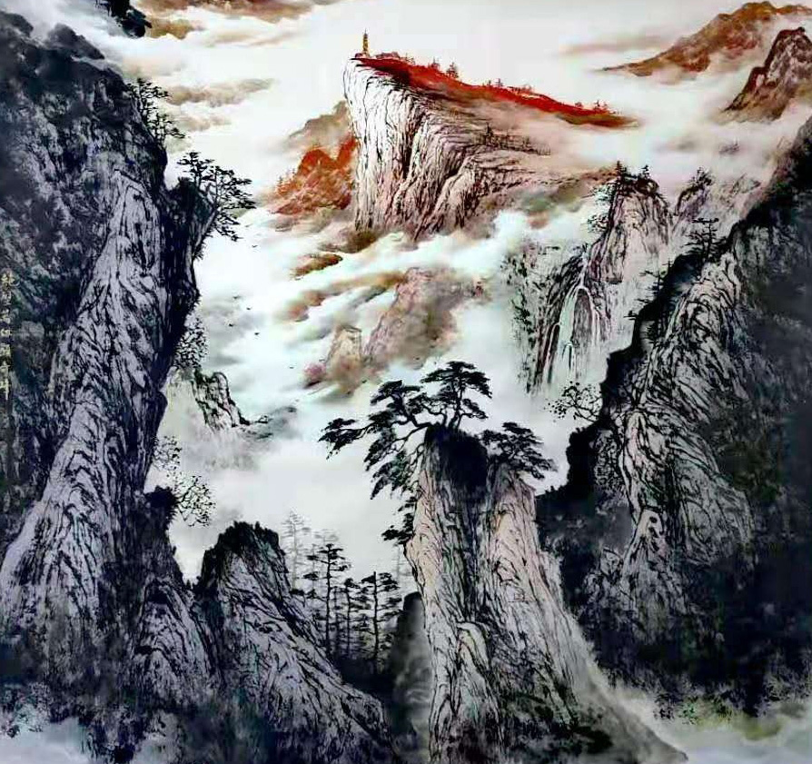 儒家印象 无论描绘怎样空灵的心境,画家的笔触总是那么的细腻,山的轮廓,水的曲线,云的回环,一丝不苟,纤细入微。画家多年的工笔线描的童子功,可能已经让线条成了表情达意的习惯方式。但这不能成为主要的理由,因为兼擅工写的画家不在少数,他们为了抒放平日“规矩”的神经,需要有时任性泼墨。不过更多地,我想是出于画家心灵的需要——他就是这样一个心细、自律的人。