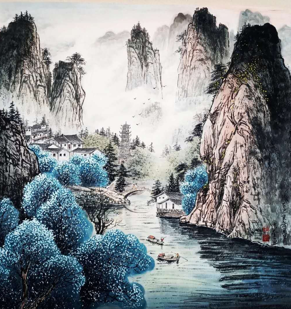 喜欢画山水。如果想深入了解尚秉奎其人,就读读他的山水画。这里,是画家放牧心灵的后山,是精神的一次洗涤。尚炳奎山水画景观重重,彩墨生动,然神完气足、养眼疗心。