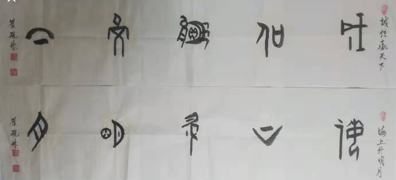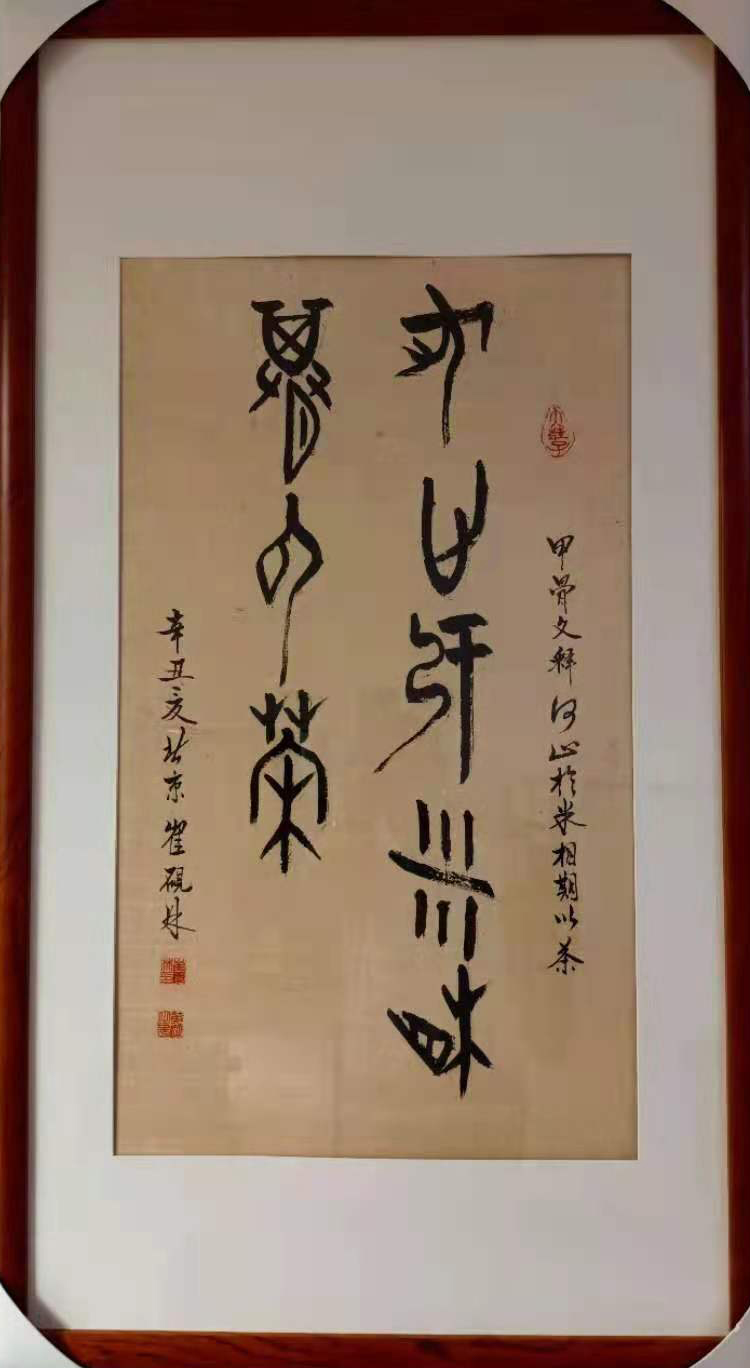 崔砚林人品髙洁,勤奋异常。自退休后酷爱书法,真楷行草皆优秀。尤其是他的甲骨文作品更深受人们的喜爱。