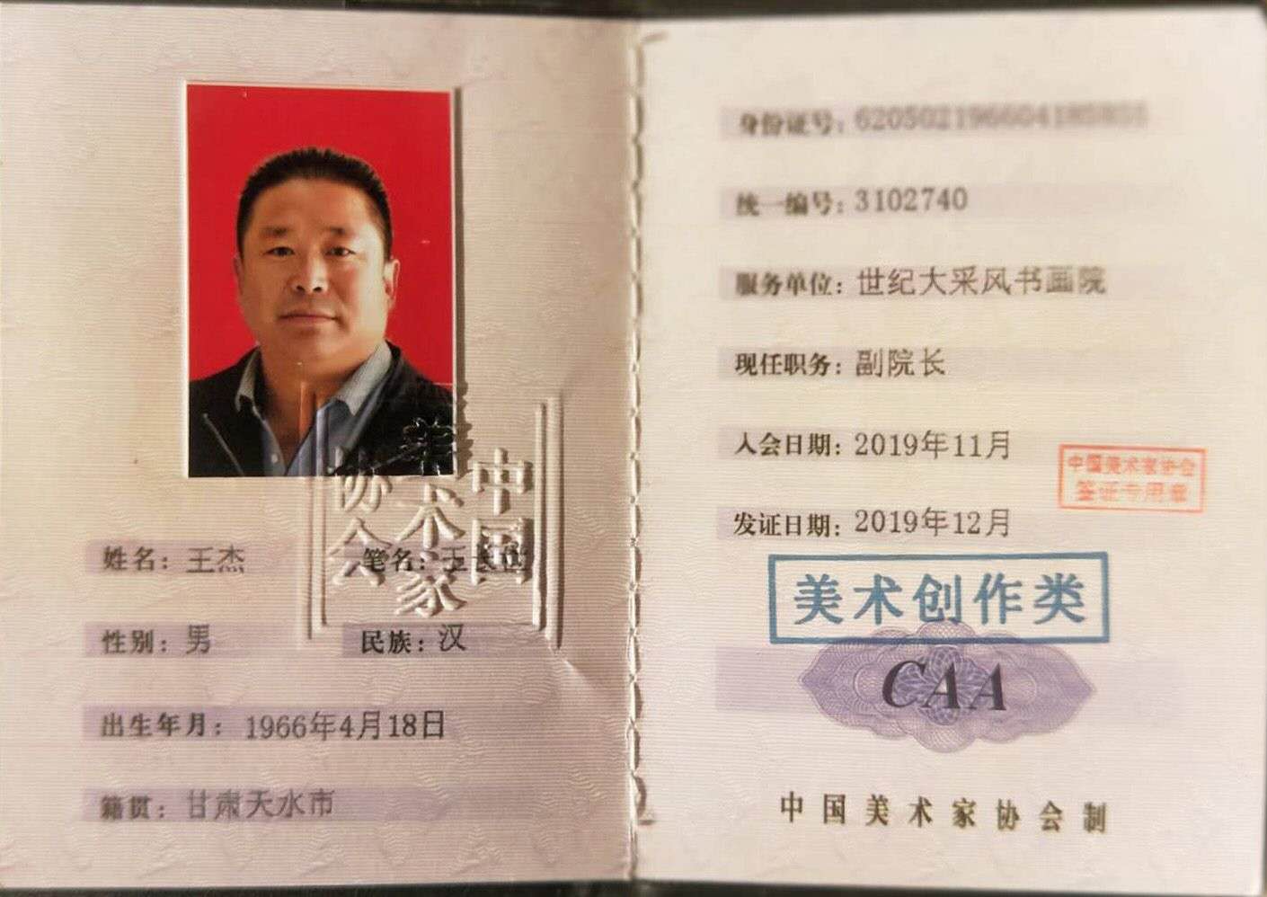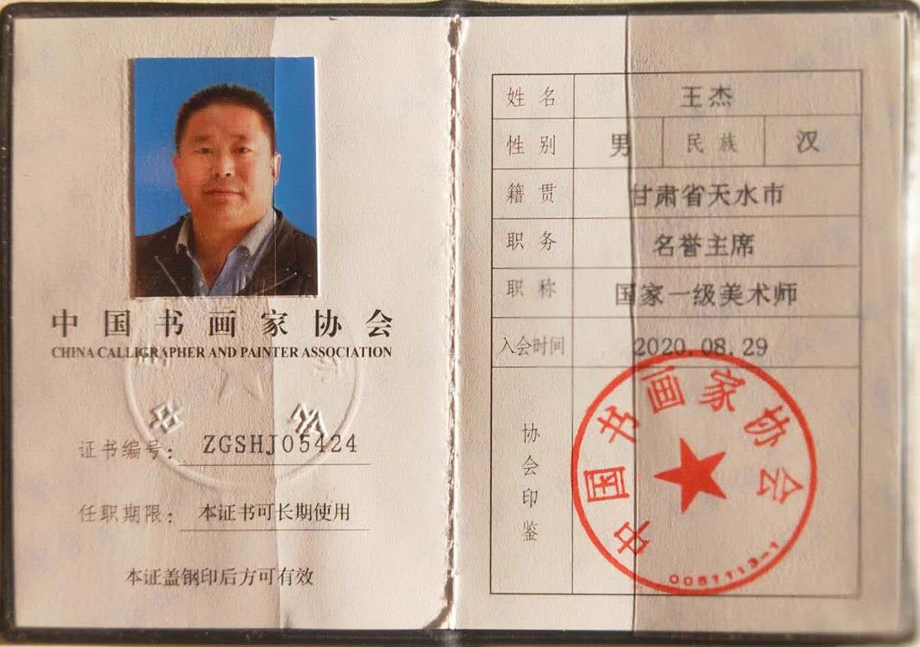 王杰祖籍甘肃省天水市秦州区平南镇公主村。生于1966年,大专学历,党员,从事教育研究和书画研究三十多年。中国领导干部网书画研究院会员;中国华夏万里行书画家协会会员;中国书画家协会会员;中国世纪大采风书画院副院长;中国书画家协会名誉主席。文化艺术人才资料数据库会员;北京宣和艺术研究院会员;中美协会员。中国艺术名家档案馆会员。名家百科数据库会员。国家一级美术师。“中国国礼艺术家”“人才数据库书画名家”;“中国最具收藏价值的艺术家”;“中国当代艺术家”;“中国当代艺术巨匠”;“人民艺术家”; “中国百强网和中国文化报道最热门的名家”;“最具国际影响力的艺术家”;“德艺双馨艺术家”。