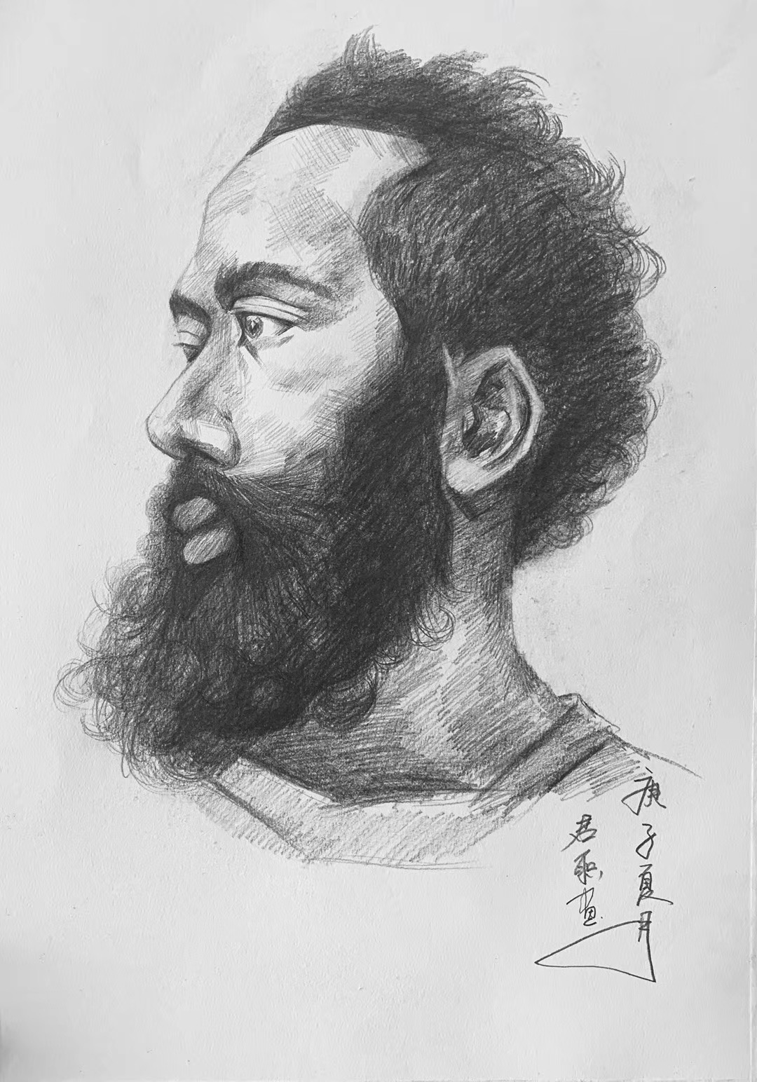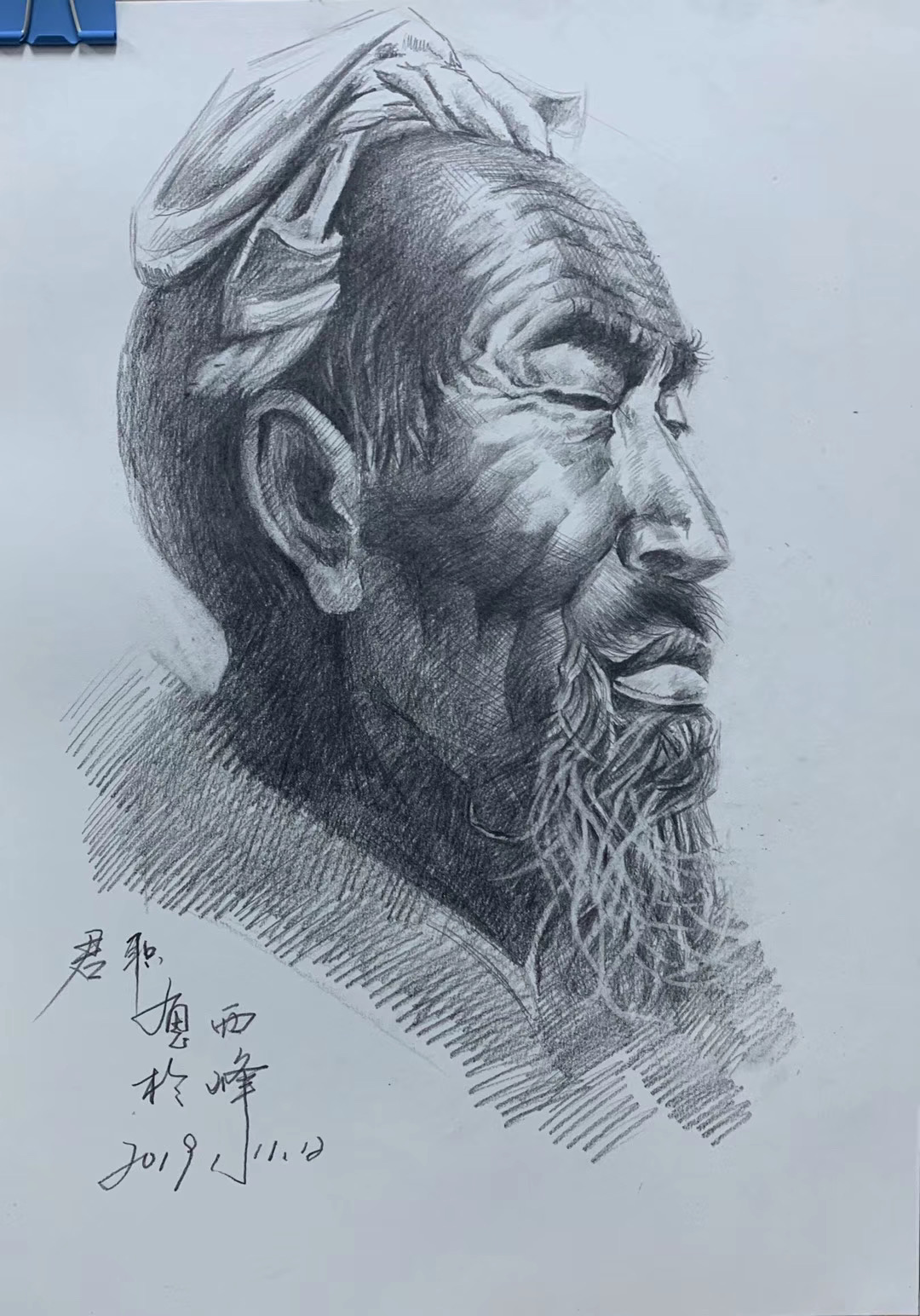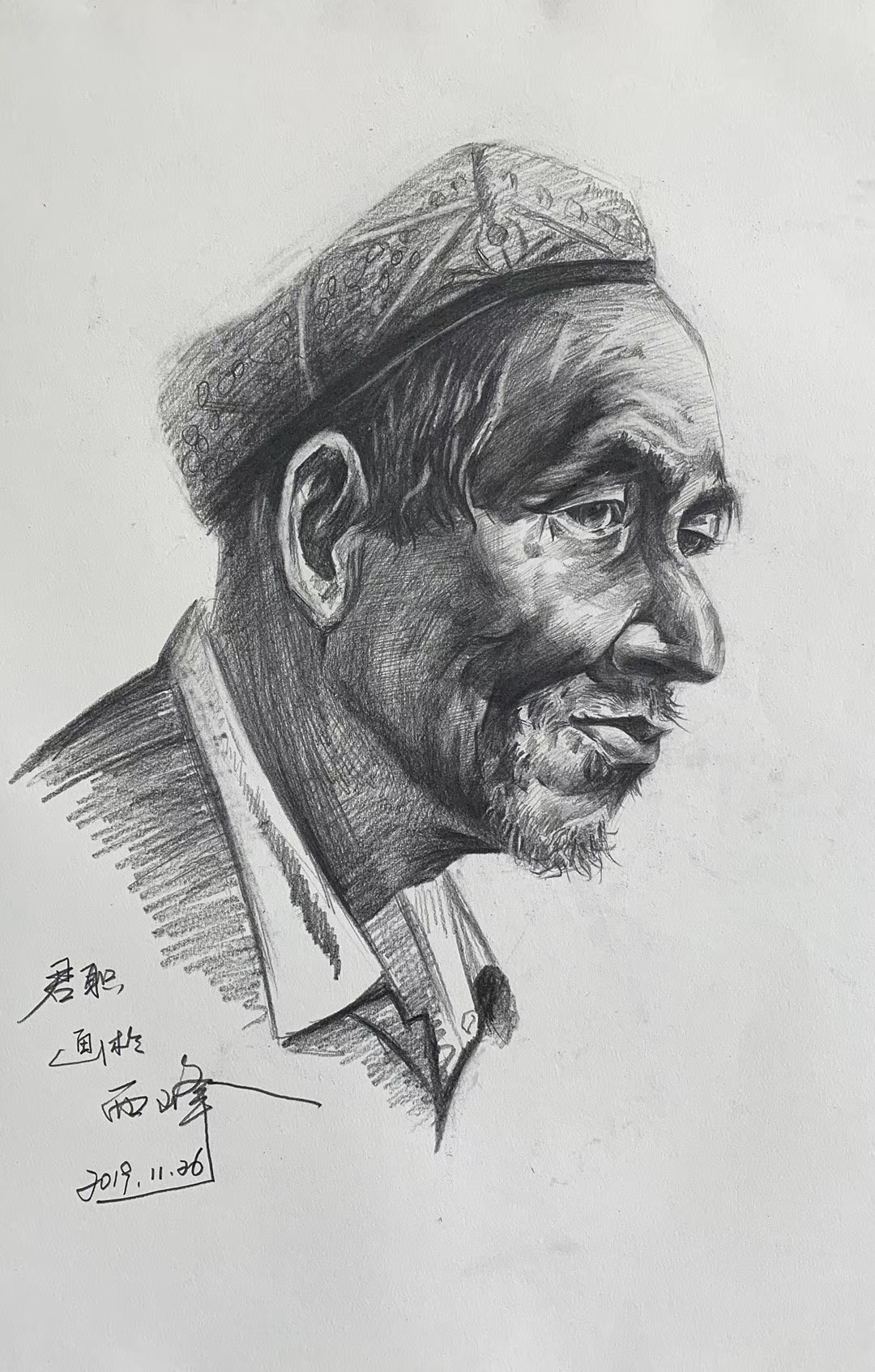 《回族老汉-素描人物》60cmx40cm