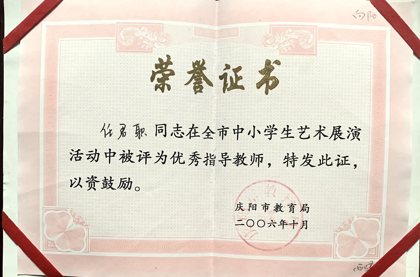 2006年在全市中小学生艺术展演活动中被评为优秀指导教师;