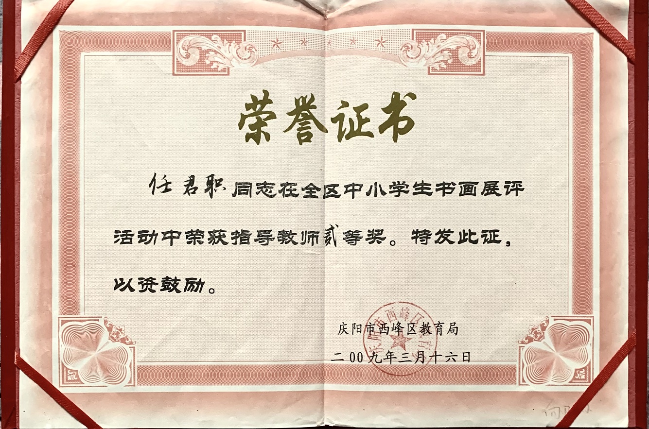 2009年在全区中小学生书画展评活动中获指导教师二等奖;