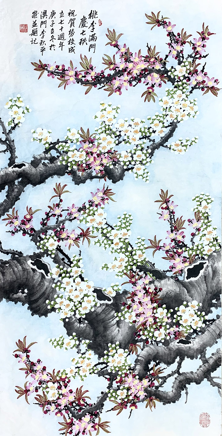 李秋平,1959年生,客家籍,著名岭南画派书画家,国礼艺术家,作品享誉国内外。自幼喜爱绘画文学艺术,于7、8岁时受父亲薰陶下,已习中国水墨画及中国书法,在中、小学时已屡夺奖状;大学预科毕业后考入香港政府设计工业学院,在香港政府工业学院专科三年制设计系及五年制高级室内设计系毕业,从事高级室内设计师已有40年。并于1999年考获中医师牌照,为澳门政府正式注册中医师。其后毕业于加拿大公立皇室大学工商管理硕士、美国普斯顿大学管理哲学博士及中国人民大学工商管理博士。2000年创立澳门书画艺术联谊会,为创会会长。在香港东华学院,绘画师从岭南画派高剑父入室弟子黎明教授;在澳门大学,书法师从原澳门大学陈颂声教授。退休后从事社团、教授书画工作。