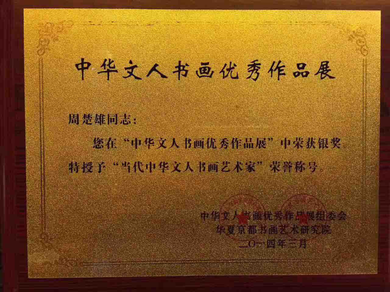 周楚雄,字一泉,号墨禅居士,2001年毕业于黄冈师范学院美术系 ,自幼酷爱书法 ,绘画 ,中学时代油画作品《春风又绿江南岸》入编《中国书画艺术博览 》大型丛书,国画《灵禽也识风光好》获全国优秀美术作品荣誉称号 ,由于对艺术的执着与追求,二十余年的坚持与用心,笔耕不辍,先后师承国画大师 钟承蒲,晁谷,慧馨居士,曾中山学习国画山水,人物,花鸟,尤其钟爱画弥勒佛 ,在睡梦中经常梦见弥勒佛,从而与佛结下情缘,笑口常开笑天下可笑之人,大肚能容天下难容之事。佛系的作品在深圳美术馆,关山月美术馆参展并获奖,2016年国画作品《佛性童心》在中华文人书画优秀作品展中 荣获金奖被誉为"画禅圣手"现为深圳书画协会会员。