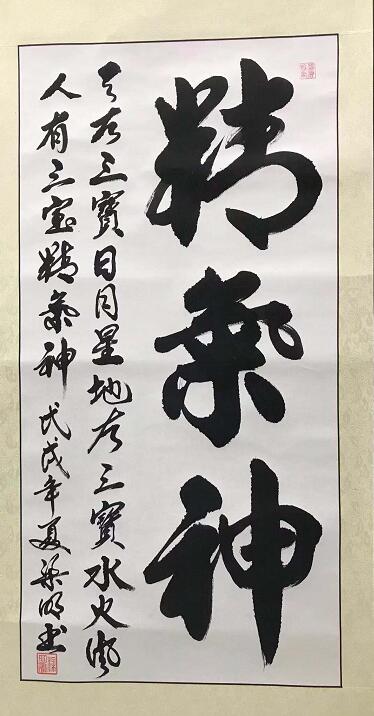 现为中国当代实力派书法家,通过自己的坚持不懈练习,熟练掌握正楷与行书写法,并精心钻研各种书写法。自创书写金粉书法以及用刀用手指书写墨字。其字笔酣墨饱,书法中蕴含了果敢创新进取的精神。