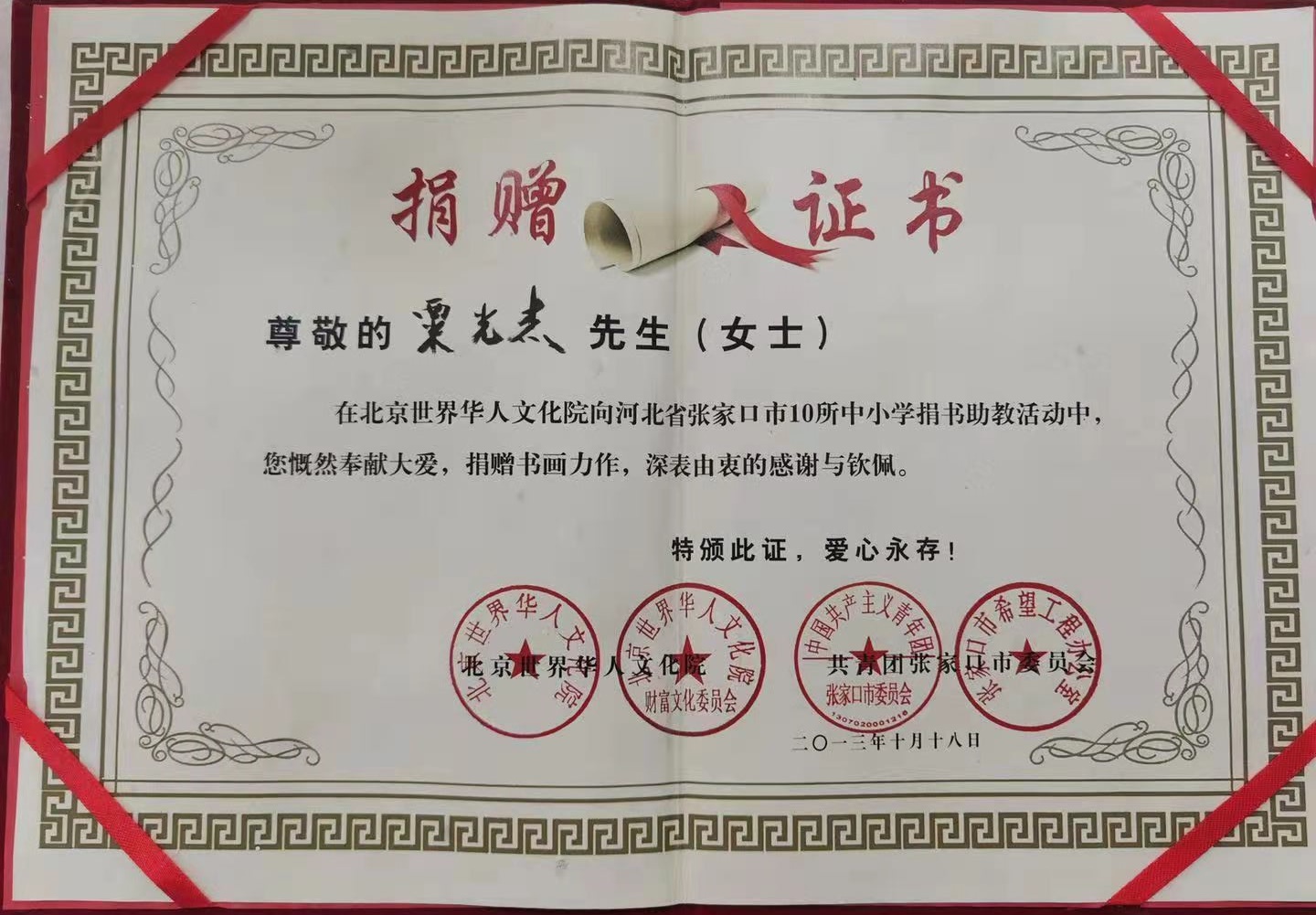 2008年为汶川地震捐赠作品,现场拍卖50于万元捐给灾区 。