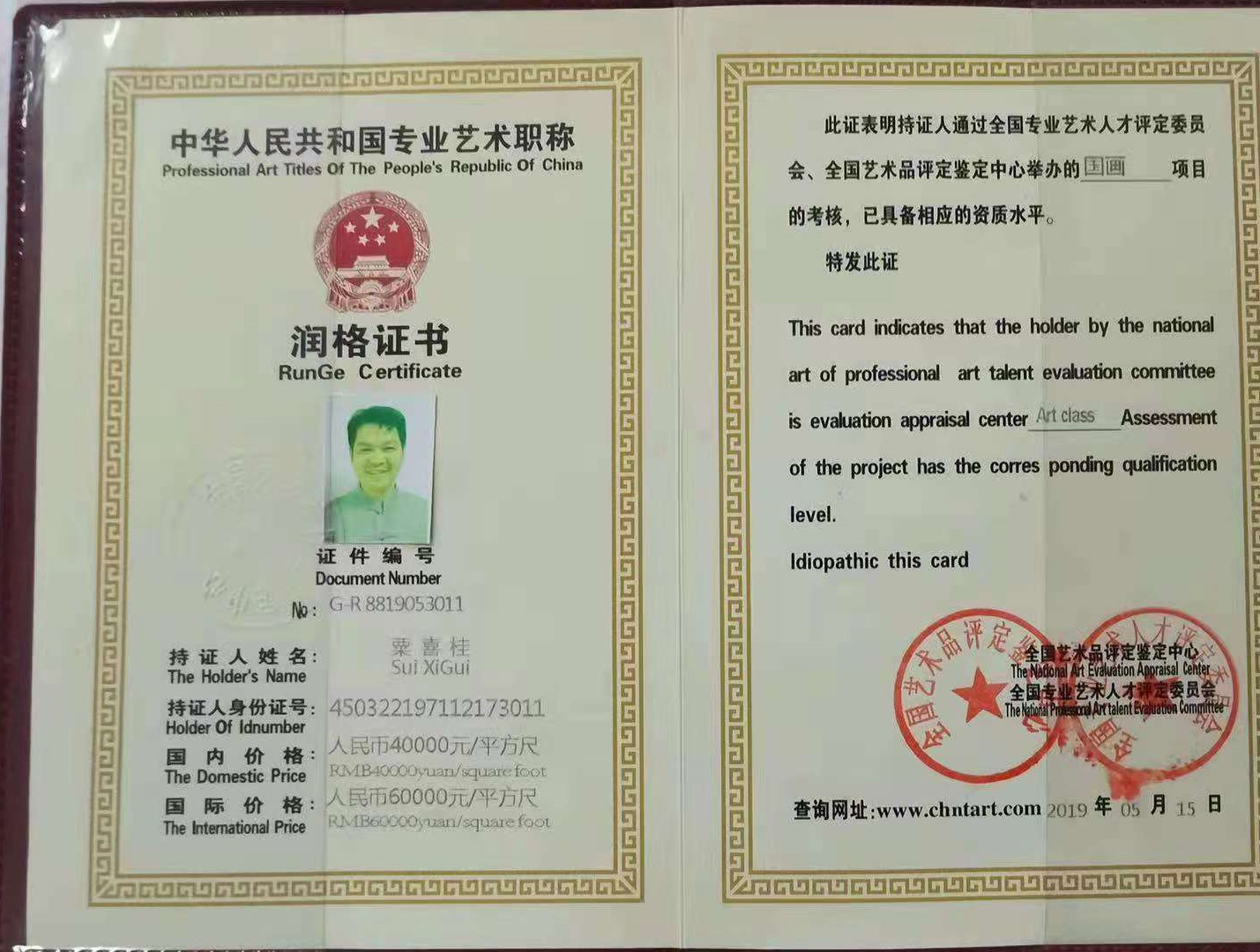 粟喜桂,现为国家一级美术师,中国美术家协会会员,中国国际书画艺术交流中心理事,北京世界华人文化院研究员,中国酒业书画艺术家协会理事。