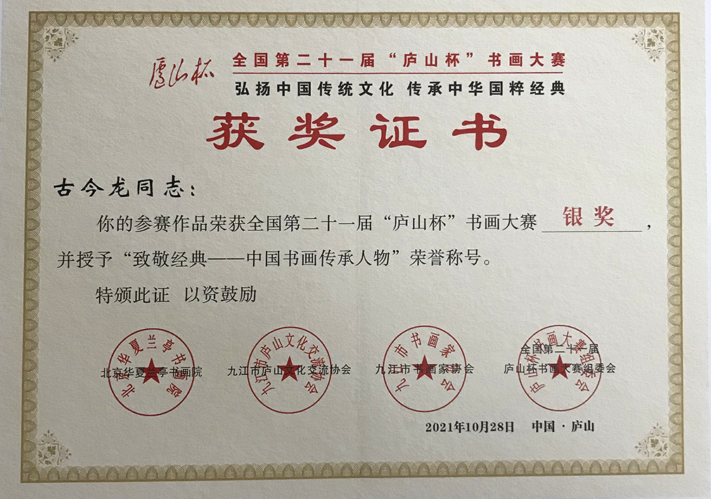 书法作品曾荣获全国第二十一届“庐山杯”书画大赛银奖等。