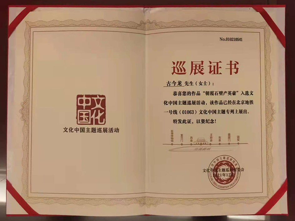 2021年12月国画作品《朝霞石璧产英豪》入选了
