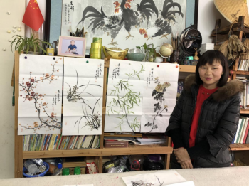 李荣荣擅画小写意花鸟,尤其是四君子梅兰竹菊,清新雅致,颇有意味。她的花鸟受恩师徐家钰的影响很大。徐家钰是中国美术家协会会员,广西书画院院士,国家高级美术师,被中国文联、中国美术家协会评为“中国画坛百杰画家”,作品多次参加由文化部、中国文联、中国美术家协会主办的大展和国外展览,荣获美国金钥匙奖牌和世界杰出人才证书、英国剑桥20世纪成就奖奖牌和世界名人证书。徐家钰擅画植物草木,用笔老练,墨色厚重。