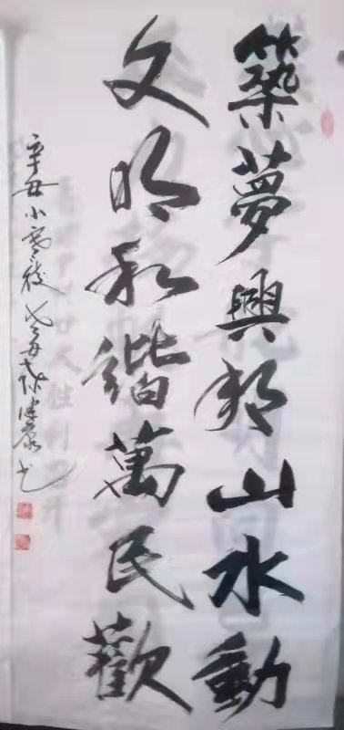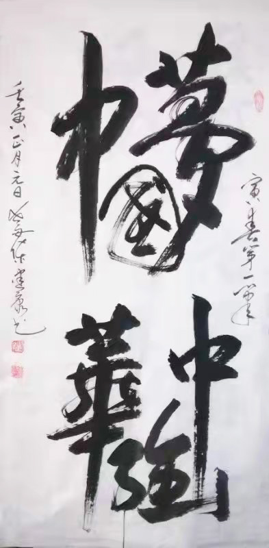 2018 年元月,四月携书法作品作为国札在文化部外交部举办的。一带一路艺术展“中欧国际艺术展向外国政要赠送,2019 年庆祝中俄建交 70 周年书画交流展中获金熊奖。