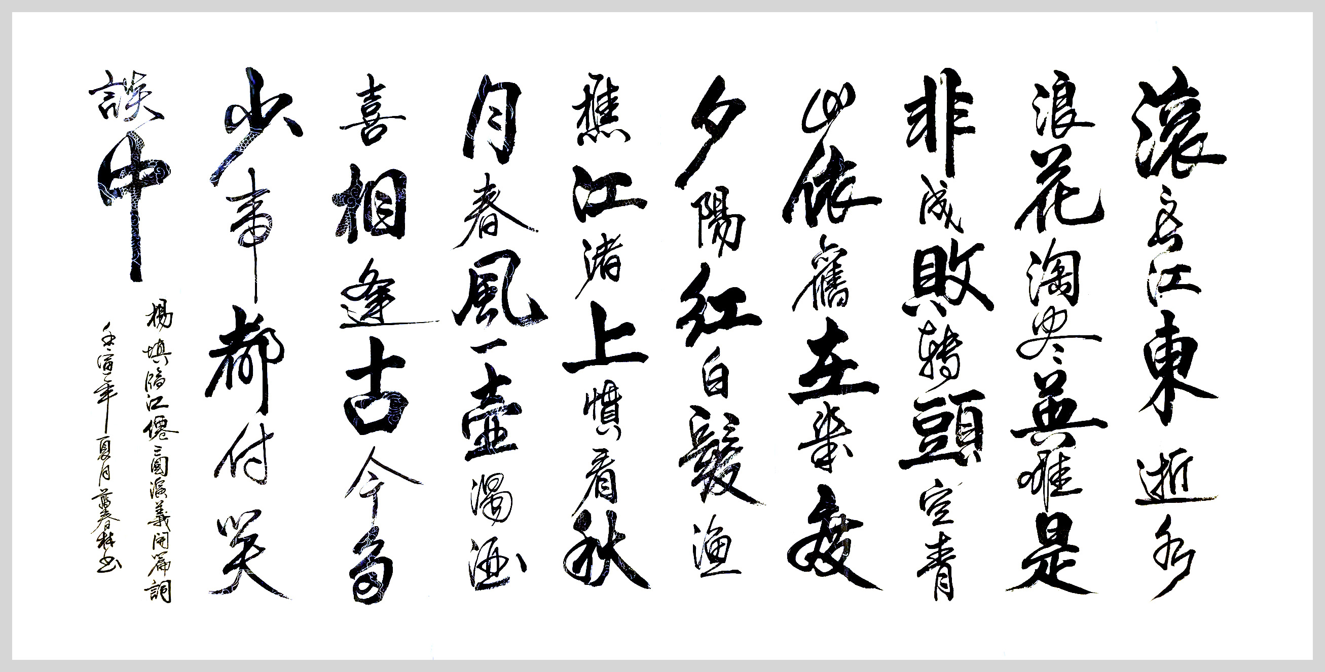 从蓝老师的众幅书法作品中,我们不仅能感受到一股传承了千年的翰墨美韵,更是能看到他和其他书法家的不同之处!其作中笔法将气势,更将恣意,笔笔线条具温润而不失劲秀,具清逸而不失法度,究其原因,正是因为先生那深厚的古学功底和文学气脉!在墨法上,亦是存于性情,通幅墨法有浓有淡,有润有枯,是谓参之以变化,而呈之于表象!而其作品榜书字体混厚不失灵动,行书流畅秀气,意境高远,独具一格,法度严谨,自然得体,笔势遒劲,气韵高古,奔放潇洒。
