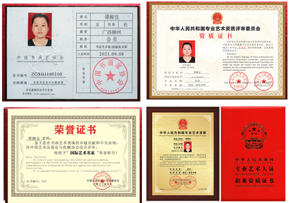 2016年任桂林御印书画院常务副院长,2018年桂林中盟书画馆副馆长,2020年荣获首届中盟书画汇演“特级书画师”称号,2021年中盟书画单位庆祝建党一百周年作品展、作品获“一等奖”,‘十大人物’称号,2022年中国书画家协会会员,2022年国家一级美术师,荣获功勋艺术家评审委员会“2022中国冬奥艺术形象大使”,等荣誉,多幅作品被中外书法爱好者收藏 ……