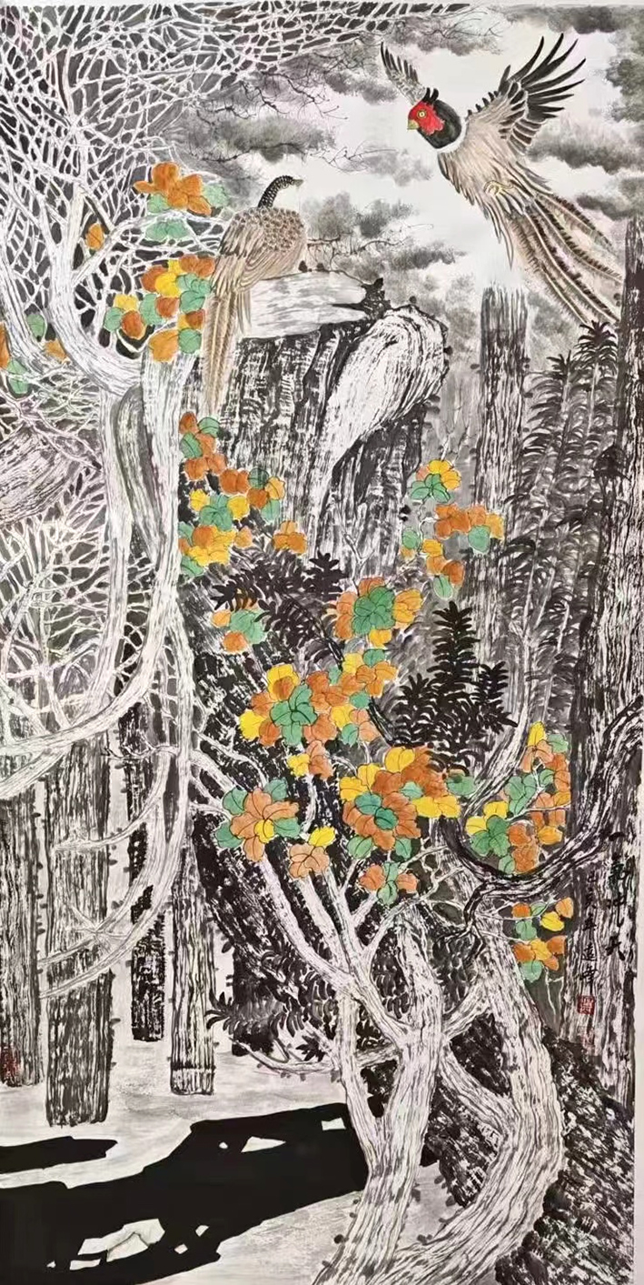 2019年5米花鸟长卷《盛世花开图》被广西省博物馆永久收藏。