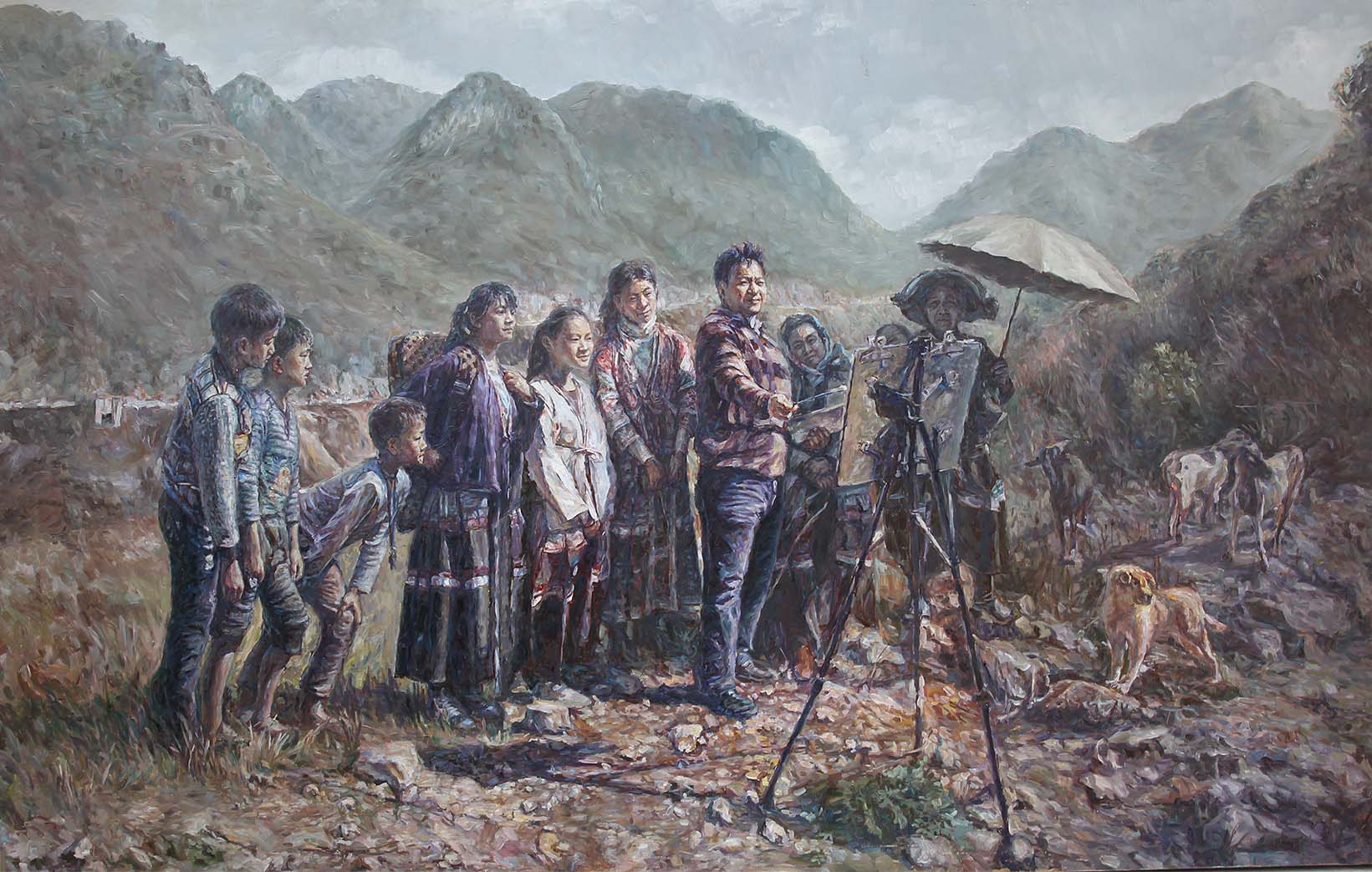 黄文诚的作品《黎民百姓》成为经典。其原因在于他的艺术风格也容入了西方的古典主义、巴比松画派、俄罗斯写实主义、印象派手法加以结合的独创风格,其表现形象真实、逼真、感人。画面虚实有度,节奏韵味十足,让人以轻松,自然之视觉享受和情感触动,尤如来到一个大家庭,其和睦相处,包容、并有感同身受,亲和、温暖的归宿。