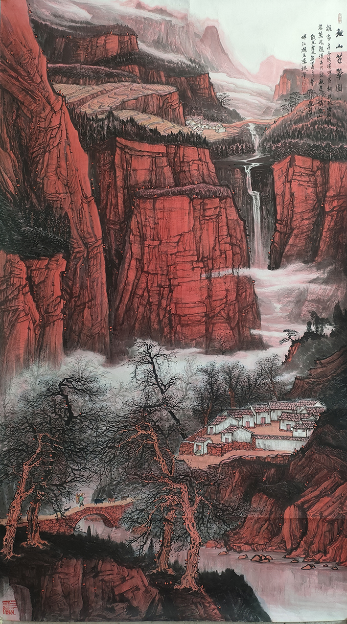2021年作品《横跨黄河架通途》入展“吉祥五台山——第二届中国画艺术展暨黄河.长城.太行主题作品展”。