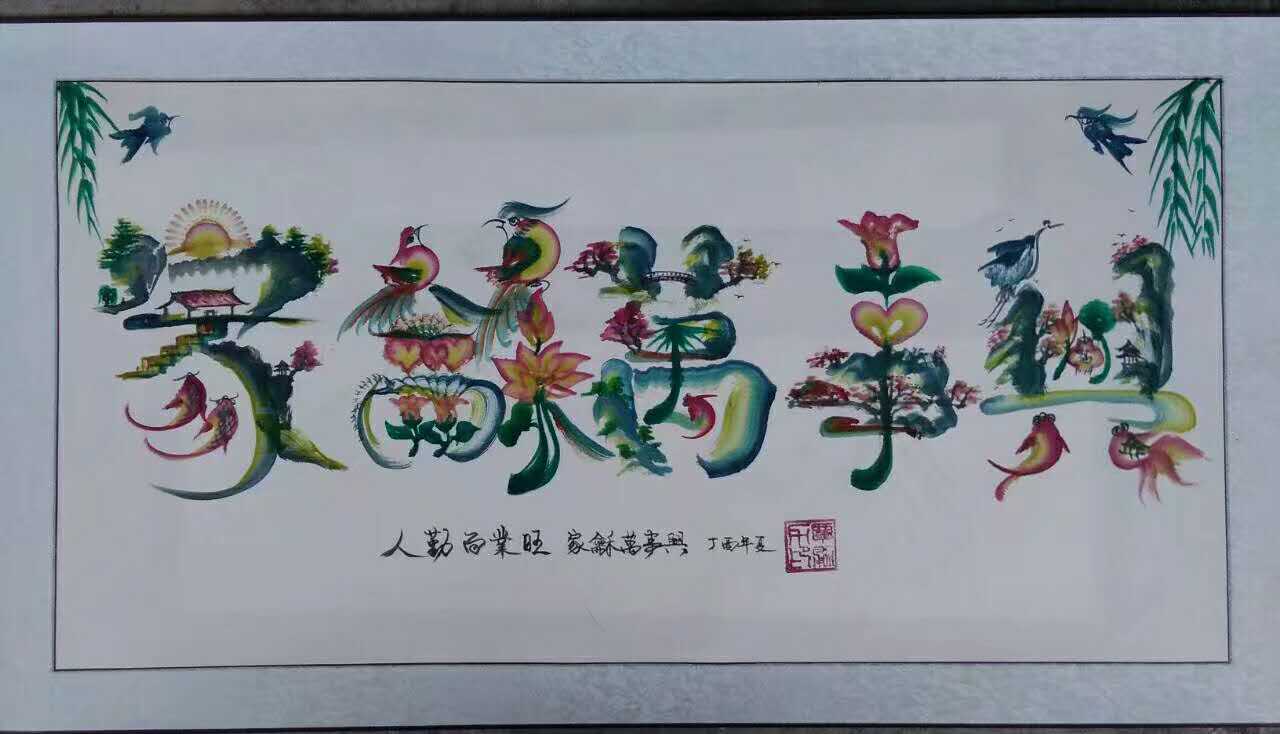 覃勇力,男,广西大化县人。2013年毕业于中国书画函授大学,现为中国水墨字研究会宣传部主任,中国水墨字艺术家协会理事。自幼酷爱书画,刻苦研究学习积累经验并独创山水姓名吉祥创意字画。其创意作品得到广大人民群众及社会名流喜好和收藏。2015年在参加抗日战争胜利70周年书画大赛中荣获一等奖,2017年在参加首届世界艺术大赛中国赛区网络评选中荣获优秀奖。