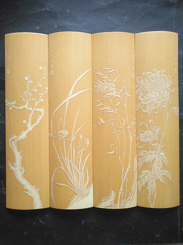 何善,号残丁。男,壮族,广西南宁市人,1979年10月生。于2008年接触竹雕,走上自学竹雕手艺之路。2014师从浙江省杭州市竹刻大师陈志贤。代表作《梅、兰、竹、菊》、《教子图》、《知足常乐》等。