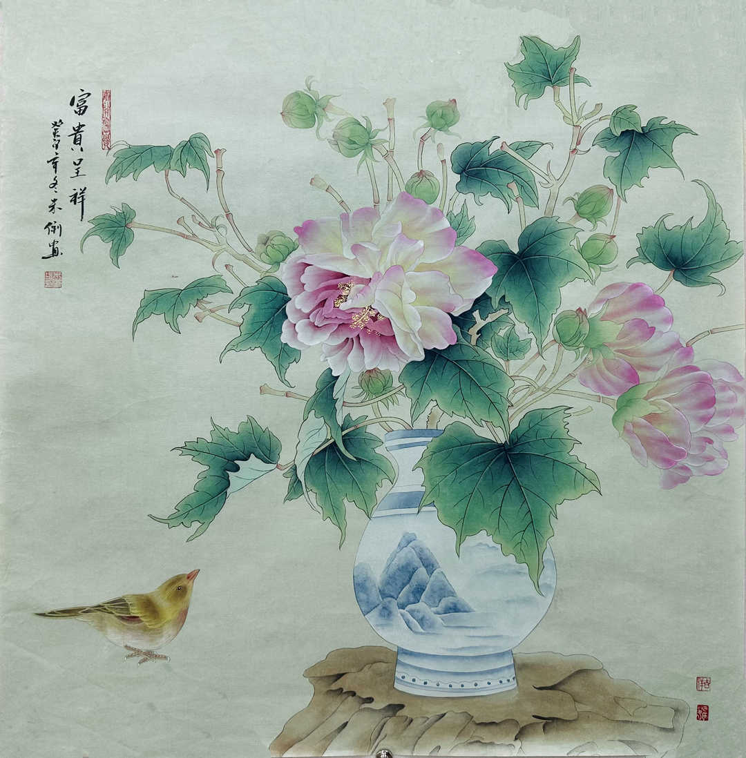 其作品色彩鲜而不艳、雅而不俗,给人以丰富多彩、生机勃勃之感,作品深得国内外藏家喜爱。