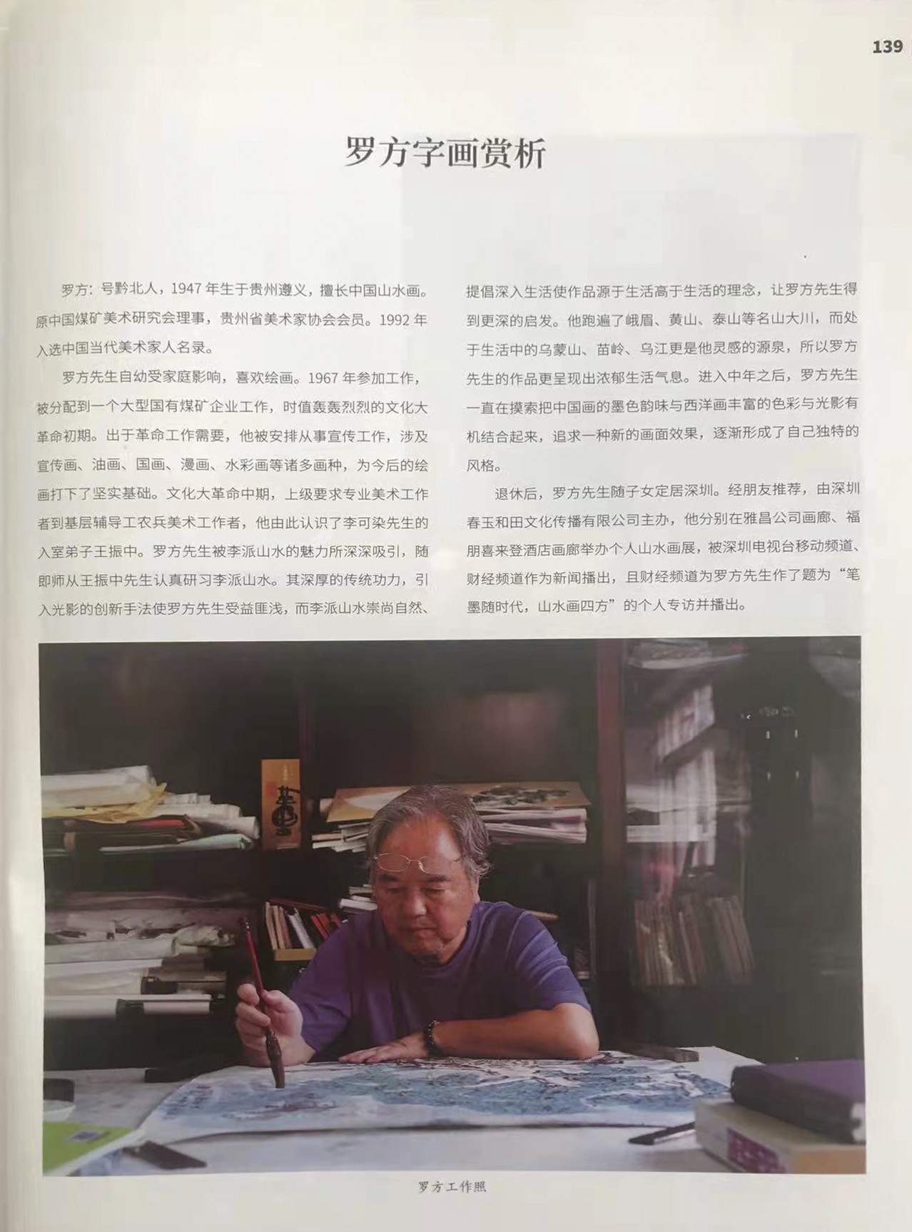 退休后,罗方先生随子女定居深圳。经朋友推荐,由深圳春玉和田文化传播有限公司主办,他分别在雅昌公司画廊、福朋喜来登酒店画廊举办个人山水画展,被深圳电视台移动频道、财经频道作为新闻播出,且财经频道为罗方先生作了题为“笔墨随时代,山水画四方”的个人专访并播出。