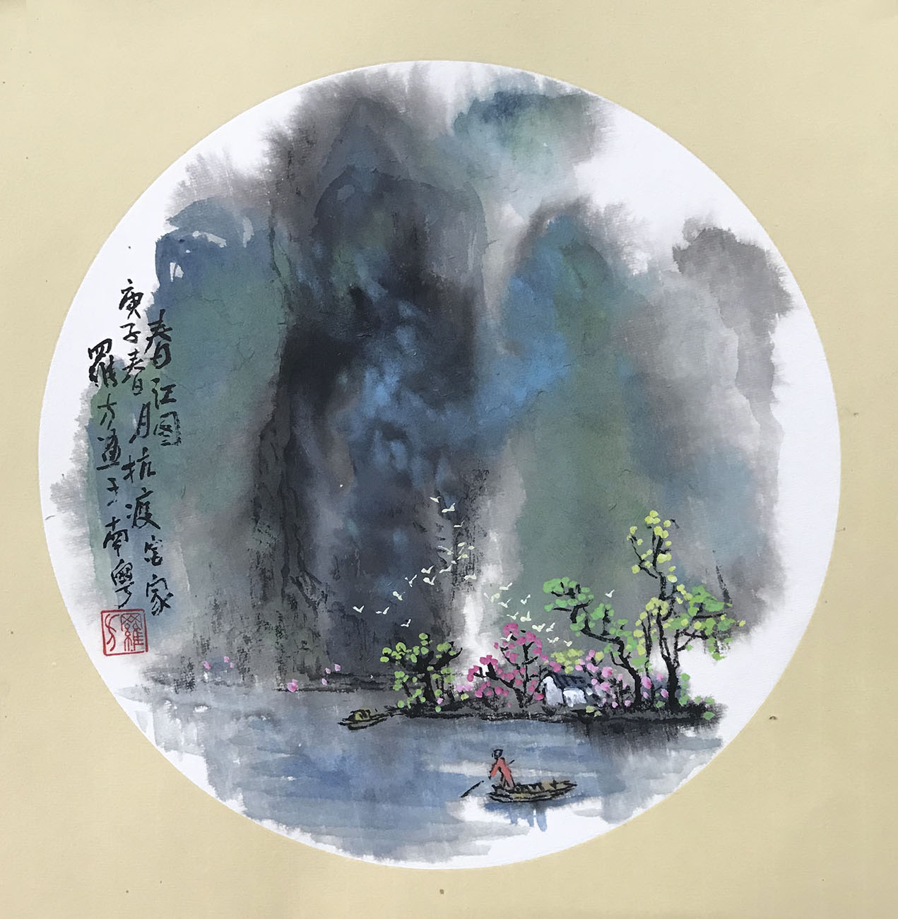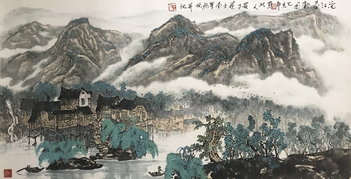 罗方是王振忠先生的弟子。王振忠又是李可染先生八大弟子之一。罗方的绘画,虽没有可染先生的大黑大红,但笔墨意趣,色彩所到,依旧没有离开李家山水的精神内涵。