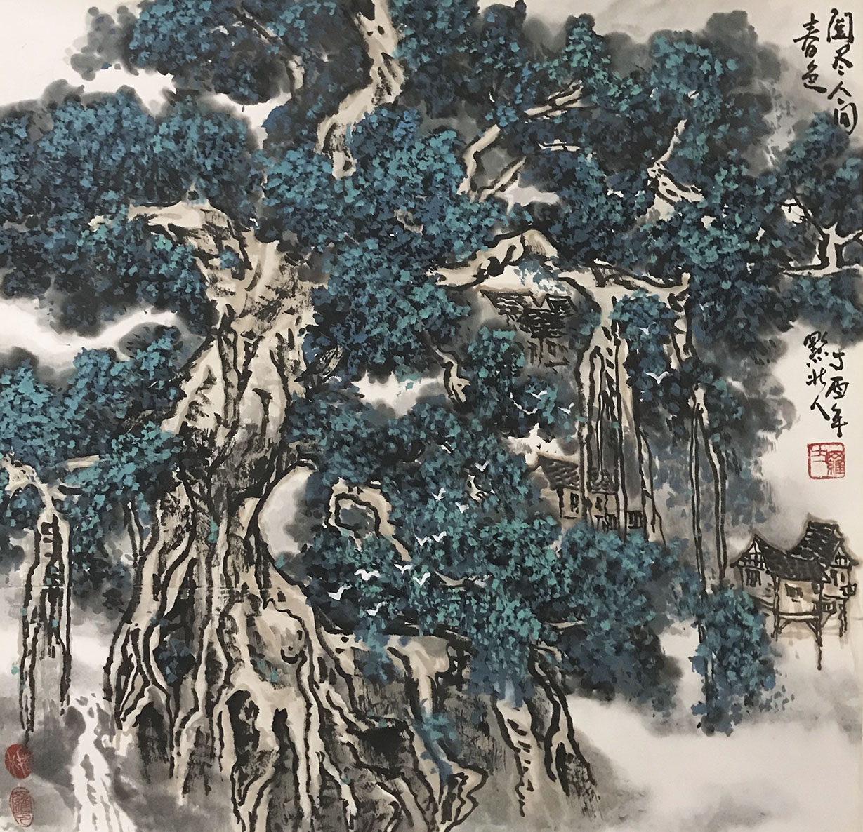 他不仅讴歌贵州的山水,也深入南粤大地采风写生,探讨尝试用新的笔墨形式,绘制生活为他打开的新视野。