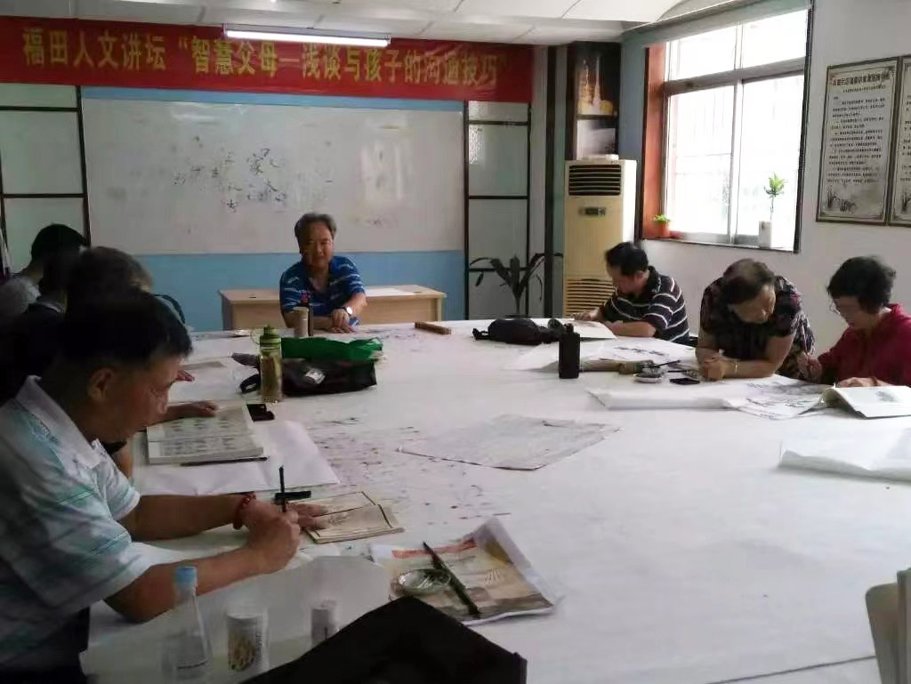 他从不计较自己身份,和社区和非专业的道友相学共长。他常说,绘画本身就是一种生活,或者说是一种情怀,金字塔顶端的永远不是多数。所以,给生活以更多的娱乐,给社会留下更多的艺术财富,才是一个艺术工作者应该追求的目标。