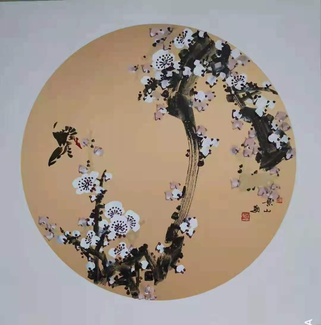 边景山既画山水画,又画人物、花鸟画,现专功梅花体裁,都显露出他深厚的的艺术功力。