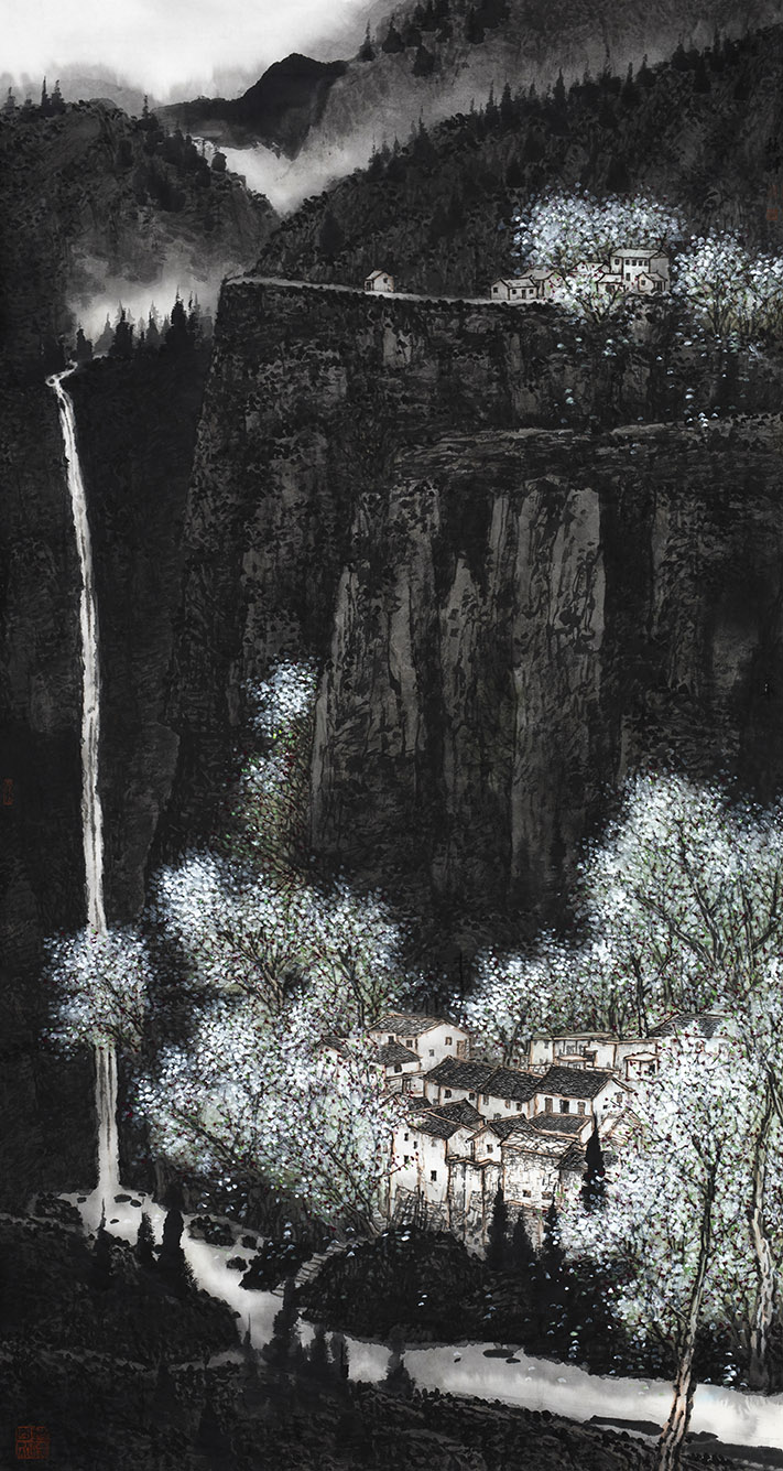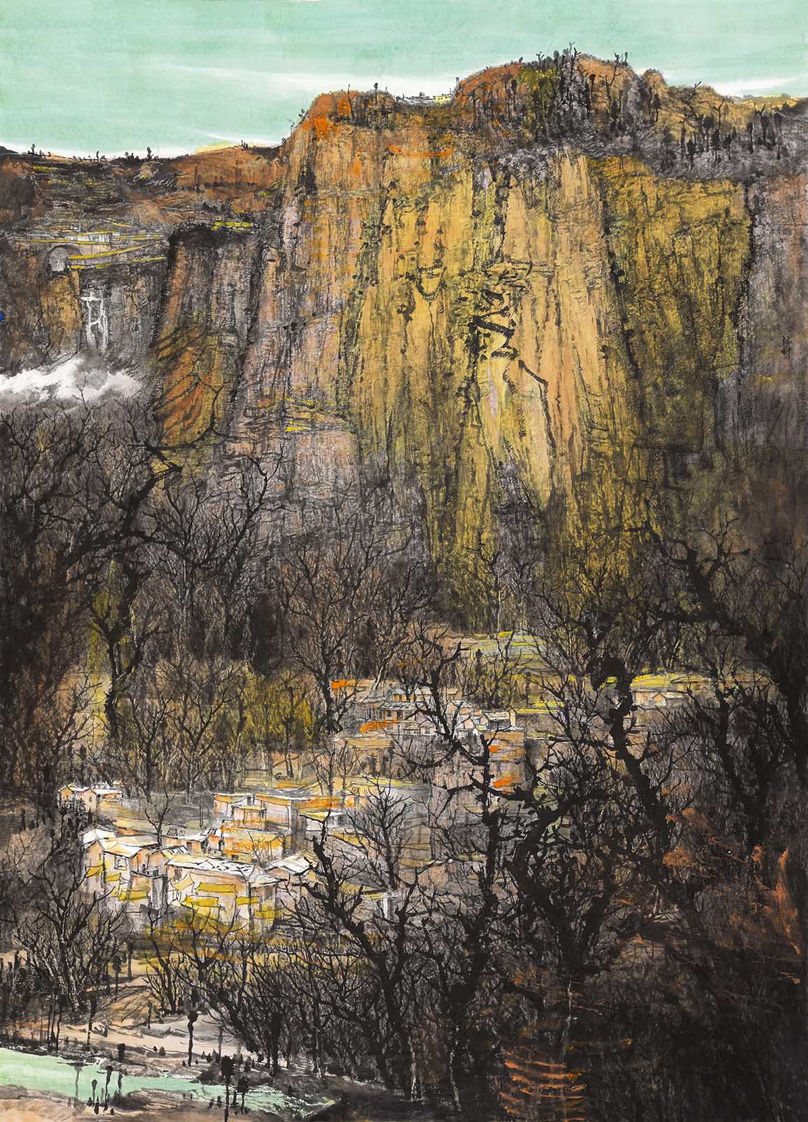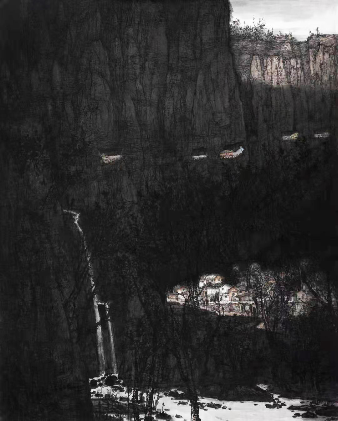 2019年作品《绝壁通途》入选“首届湖南•中国画双年展”。(中美协举办)