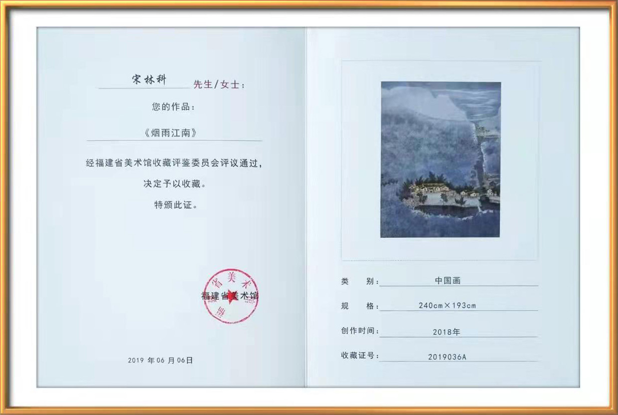 2018年作品《烟雨江南》入选“生态龙岩•红色闽西中国画作品展”。(中美协举办被福建省美术馆收藏)