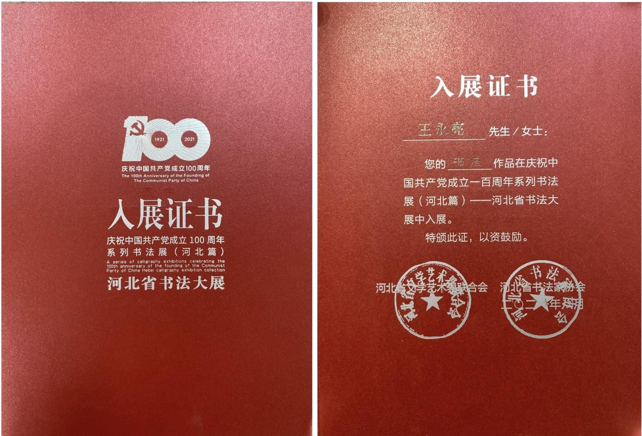 2021年庆祝中国共产党成立100周年全国系列书法展书法作品入展。