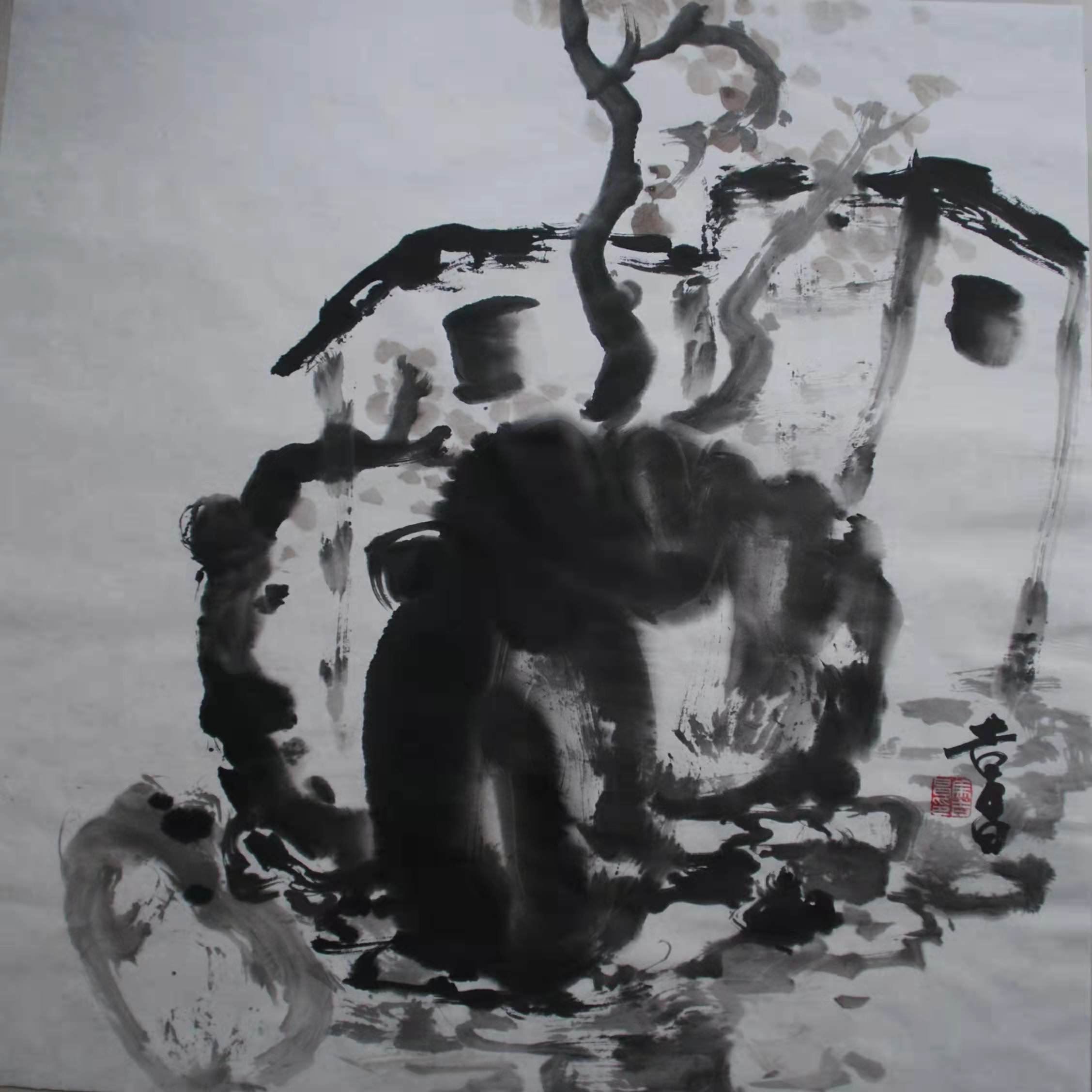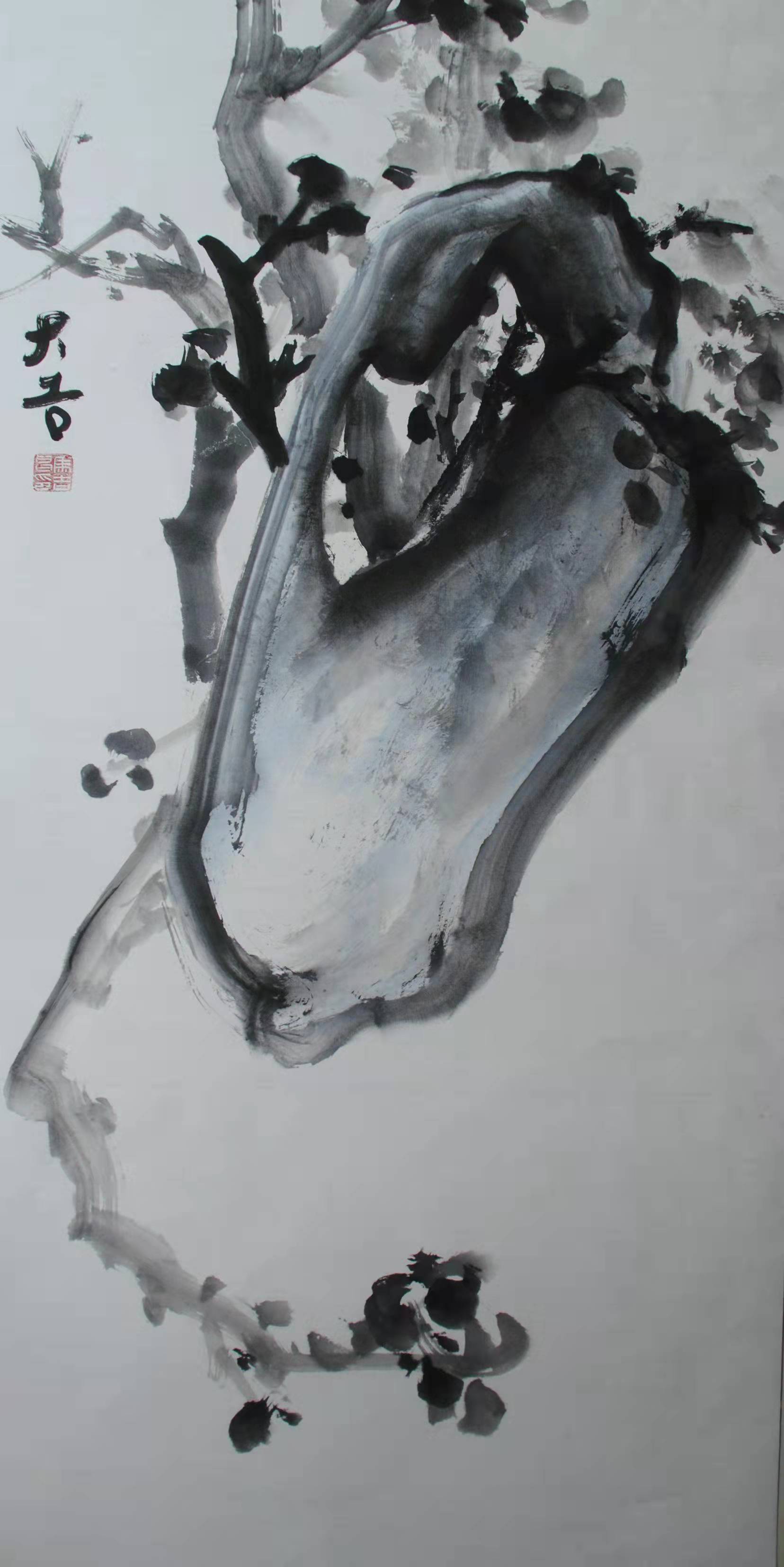 外师造化筋骨铁,中得心源春秋功。人活一口气,笔铸千钧力,马吉昌先生水墨作品里的铁筋劲骨的形韵塑造,是其书法功力深厚的支撑所得。他的绘画具有明显的书写性,就是因为他经由长时间的翰墨修炼,书法早已经达成了追风先贤,功成神品的功力。书法以帖学为气脉,以碑学为筋骨,碑帖双修,诸书皆成,在法度的构建中,又拥有草书天才般的挥纵恣意,天下无物非草书的境界,也是他外师造化的成就。笔墨自开始而至终点,都是拟写万物生机,透意生命质感节奏,所以越立巅峰写春秋,必然是功力非凡弘大业!
