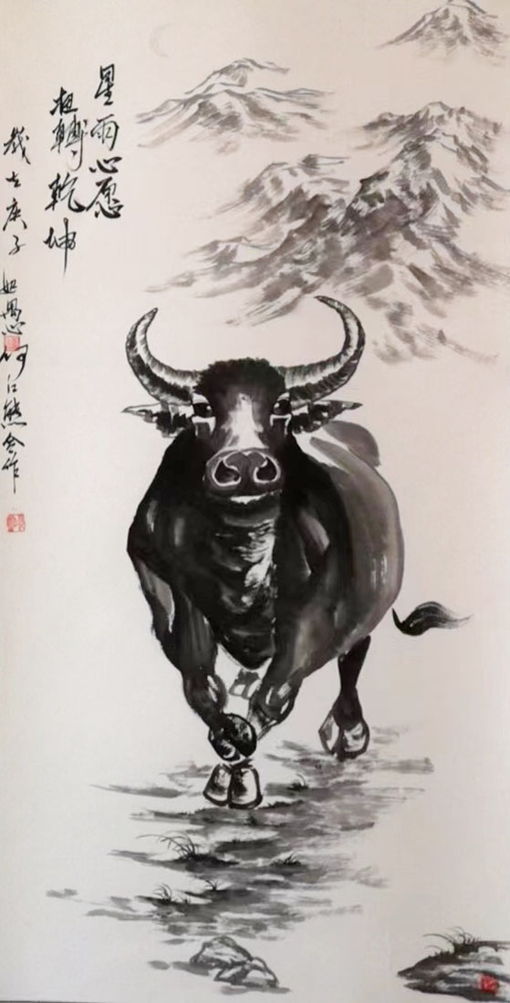 专攻动物、兼人物、山水。动物画以大型动物—龙、牛,马为主,更有特色。画风以齐派和徐派为基础,演变成自己的独特风格。画法以工带写,动物花鸟大写意和工笔画各具特色。曾得齐白石关门弟子、忘年交高中大师高度赞扬,并写诗评画说:“齐派代有传人”。