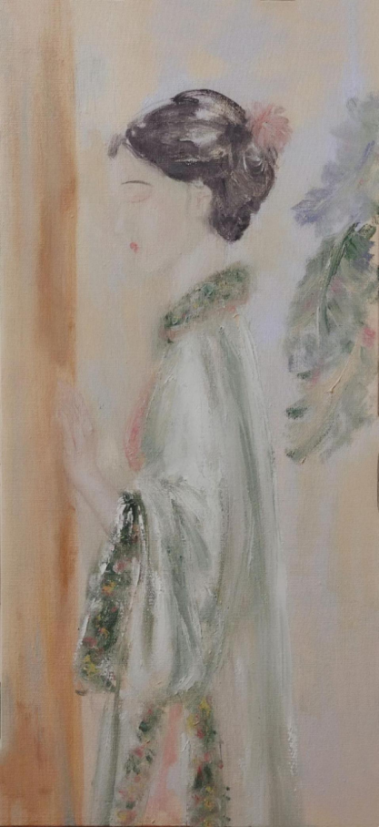 作品种类:布面油画 尺寸:50*80 作品名称《轻罗小扇》