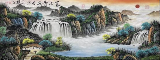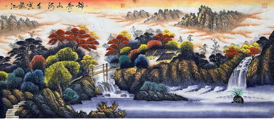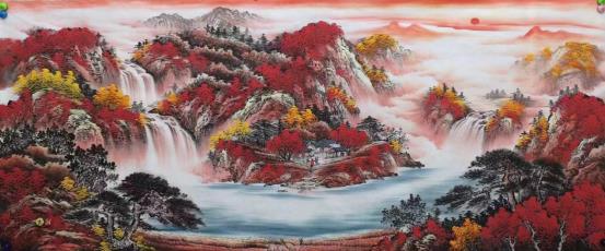 作品多由来于源于大自然,将对大自然的热爱融汇贯通到笔墨之中,并能根据具体具像表现出风格迥异的画面,在构图上大量吸收西方绘画技法,巧妙地融入中国画中。在画面的整体处理上追求生动细腻,用笔讲究骨力遒劲,在色彩运用上受大千先生影响极深,喜用大青大绿的泼彩画法,颇具大千先生遗风。现书画作品更是达到了15000元—平尺,深受世界各国书画收藏者的喜爱。