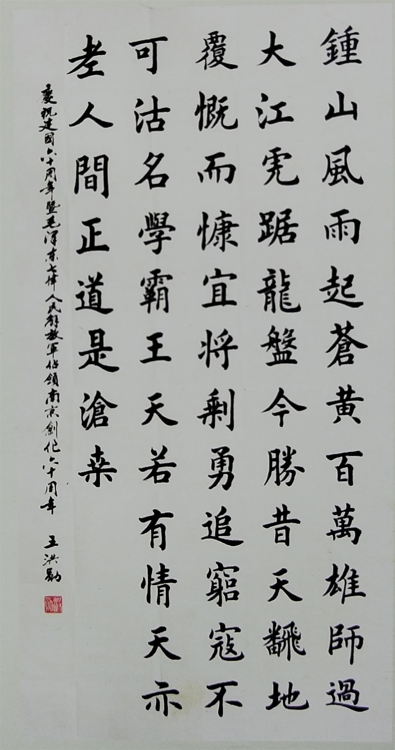 王洪勋,男,1940年12月生人,字老墨,笔名善翁,国家一级书法家。现为中国书法家协会会员、中原书画研究院院士、中国川夫书画院院士、中国现代青年书画家协会荣誉理事、中国老年书画研究会会员、中国书法名家联合会理事、河北省书协会员、河北省老年书画研究会会员、邯郸市书法协会会员。入册《世界书画家铭录》、《中国艺术研究院一级书法家》、中外书画艺术交流协会会员。