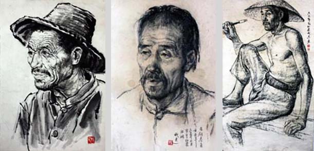 真实地表现对象是人类的共同愿望,但 中国画更强调本质意义上的真实,而区别于西方表象真实的描绘,而称之为‘意象’。由于绘画创作离不开主观与客观的因素,当主观强于客观时,必然产生一种似与不似之间的造型状态,也就是笔墨语言自由抒发的随机状态,因而产生出更加完美的写生作品。孙安先生在写生中都严格遵循了这一“意象”造型的原则,因此其肖像写生作品大都具有明确的寓意和精神内涵。