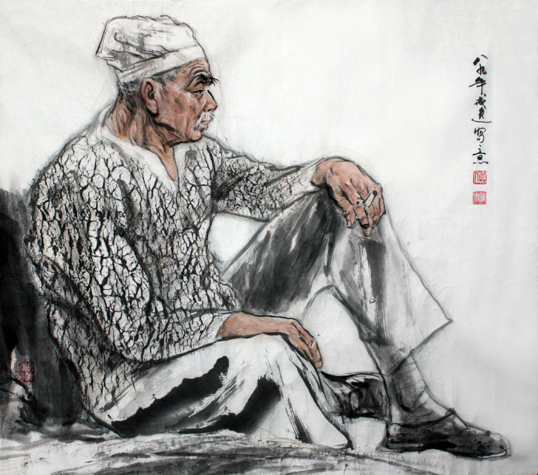 孙安先生是蒋兆和、叶浅予、孙其峰等先生的亲传弟子,他的人物画虽属“徐蔣体系”,借鉴了西洋素描的画法,但他对结构体积的理解和表现手法,独具个人见解,无论他的水墨写意画,或其素描速写,在塑造人物形象时,虽然追求写实,但他更强调中国传统水墨画写意的理念,并追求以线造型,骨法用笔,及书法笔意入画的意象造型手法。其用笔的轻重、行笔的快慢、和水墨的浓、淡、干、湿及韵律,以及抅、皴、擦、点、染等笔法,都遵循中国水墨写意的凹凸法、明暗法、虚实法,以及书写意味来表现对象。他说:“一个画家的全面修养及其性格,决定了他视角的选取和语言的质量。”并认为,每一个人的生活际遇和情感世界不会与他人相同,学习古人、学习他人、学习技巧,只是基本功的一个方面,更重要的是要以自己的人生感悟和审美体验,去寻找属于自己的情感表达方式,从而构建出富于时代精神和具有传统底蕴的个性化的艺术样式。