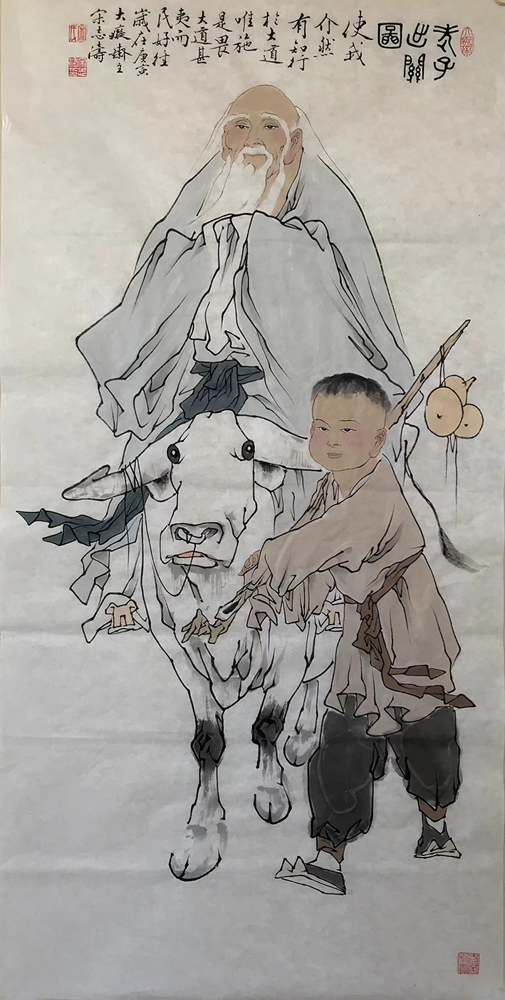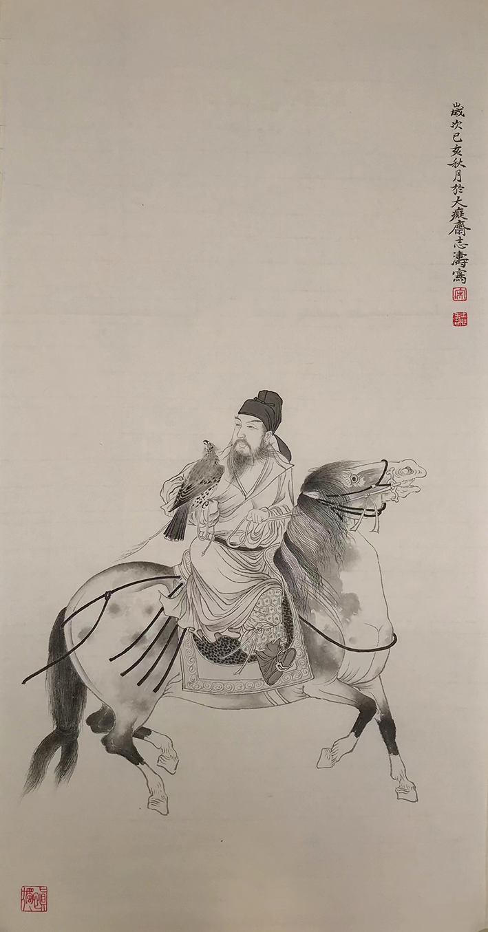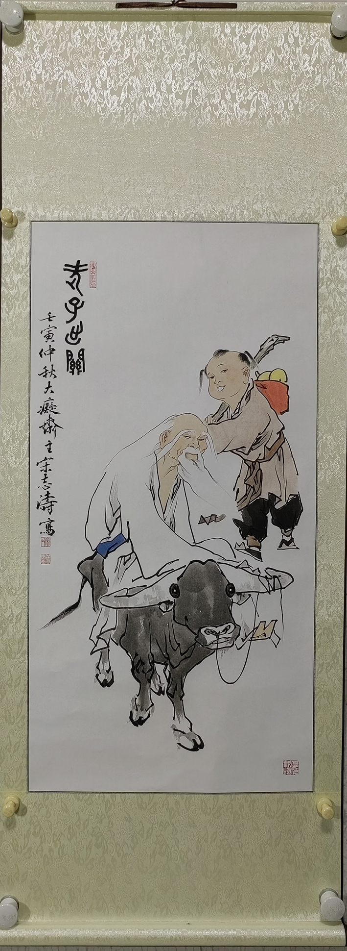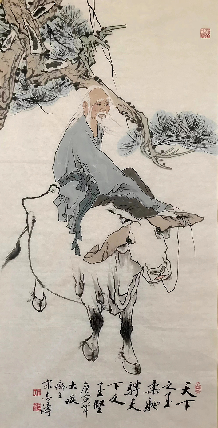 近几年,宋志涛的创作热情更加高涨,对人物画有了更深的理解。他不仅绘画水平有了很大提升,在书法上也愈加痴迷,他先从颜体入手,刻苦研习多年,又转学二王及黄庭坚米芾等诸家法帖,其书法凝重中有飞动,庄严处寓活泼。