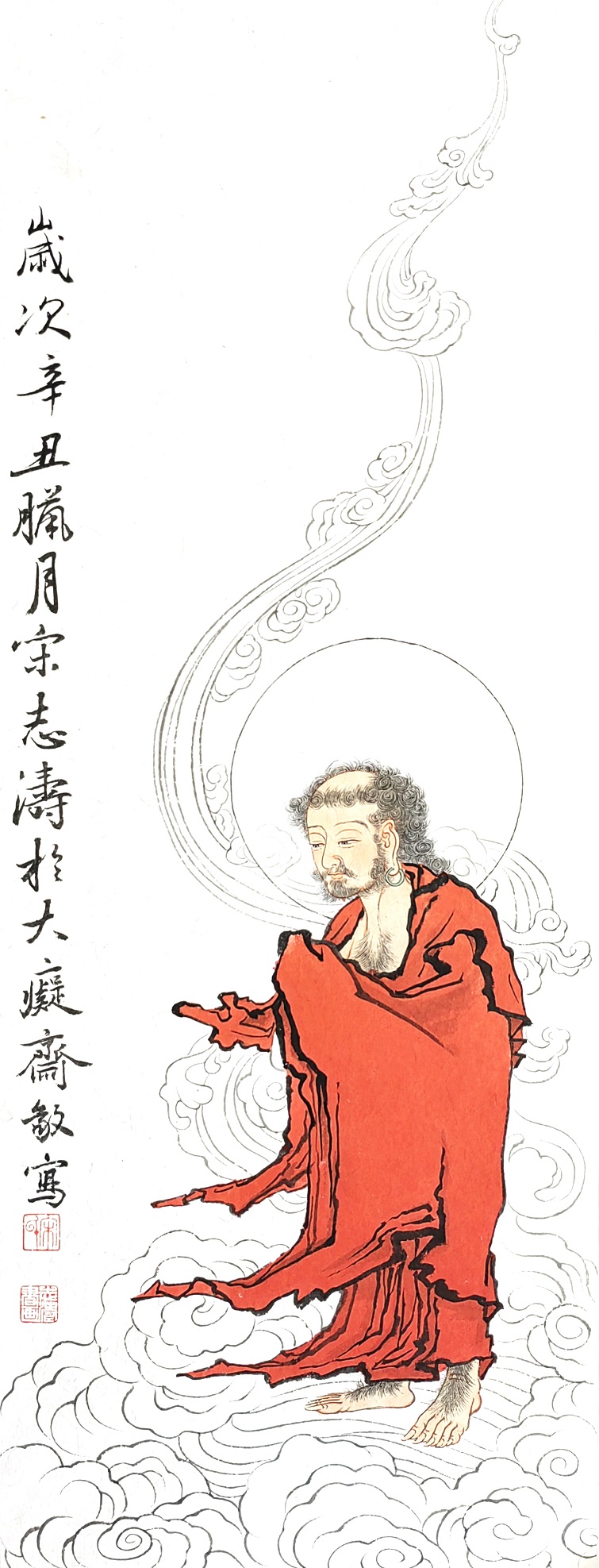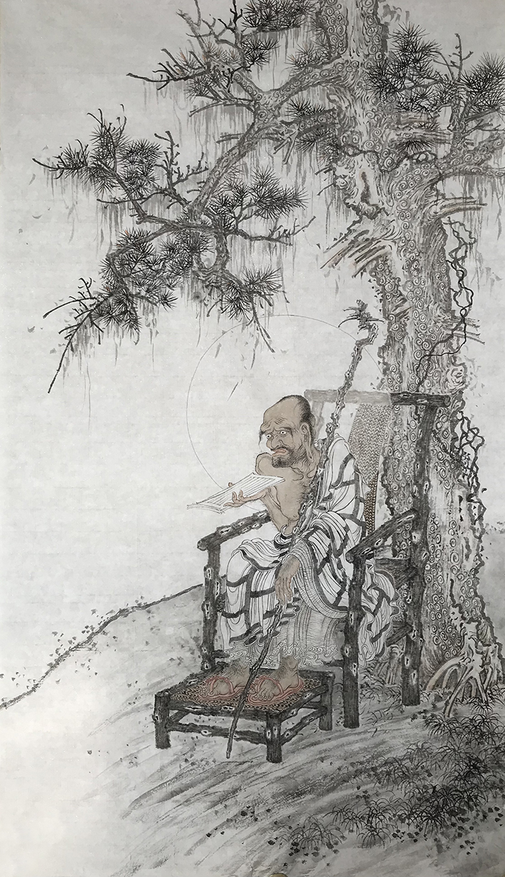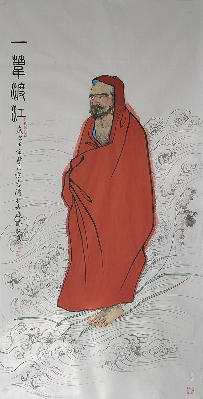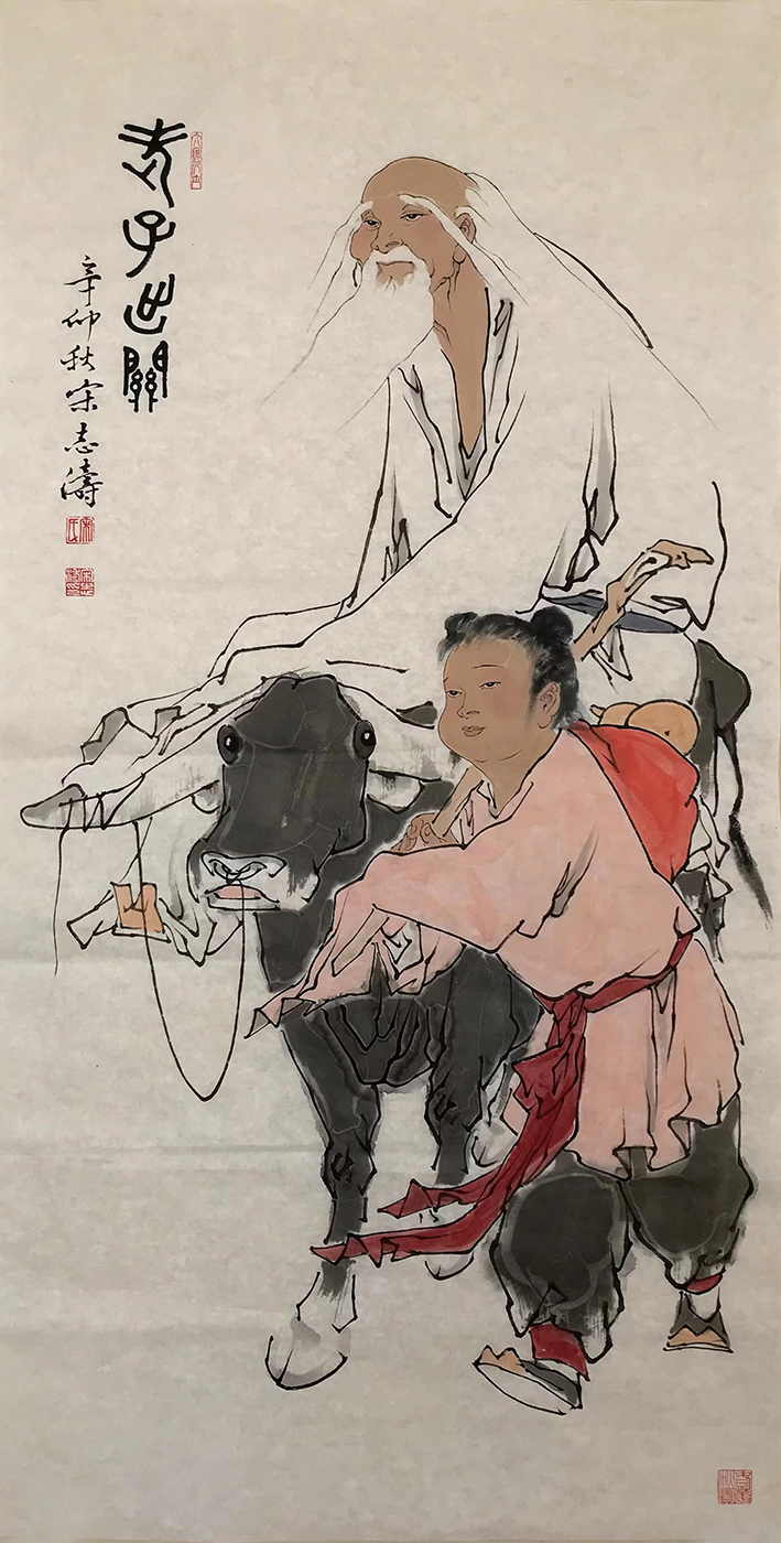 近几年,宋志涛的创作热情更加高涨,对人物画有了更深的理解。他不仅绘画水平有了很大提升,在书法上也愈加痴迷,他先从颜体入手,刻苦研习多年,又转学二王及黄庭坚米芾等诸家法帖,其书法凝重中有飞动,庄严处寓活泼。