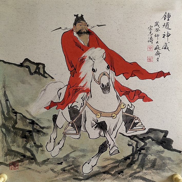确实名副其实,宋志涛从小喜欢画画。小时候是凭兴趣随意涂鸦,被乡邻赞为小画家,后考入专业美院进行系统的学习,才算真正踏入艺术的殿堂,从此更加精益求精,从任伯年 八大山人 沈周到龚贤 张大千,无不潜心临习,反复研究揣摩,取其精华为己所用,使其花鸟山水人物都独具风韵。尤其是在人物创作上更是独树一帜,形成了自己特有的风貌。写意人物早年仰慕范曾先生!2010年偶然得到范曾先生指点,从此反复研究揣摩写意人物技法,谨遵范曾先生提出的,“骨法用笔”,“以书为骨”的理论思想,注重表现人物不同的线条质感!经过不懈努力,日渐精进!每每作画信手拈来,正所谓:当其下手风雨快,笔所未到气已吞!竟一时被人们称其为:“小范曾”!