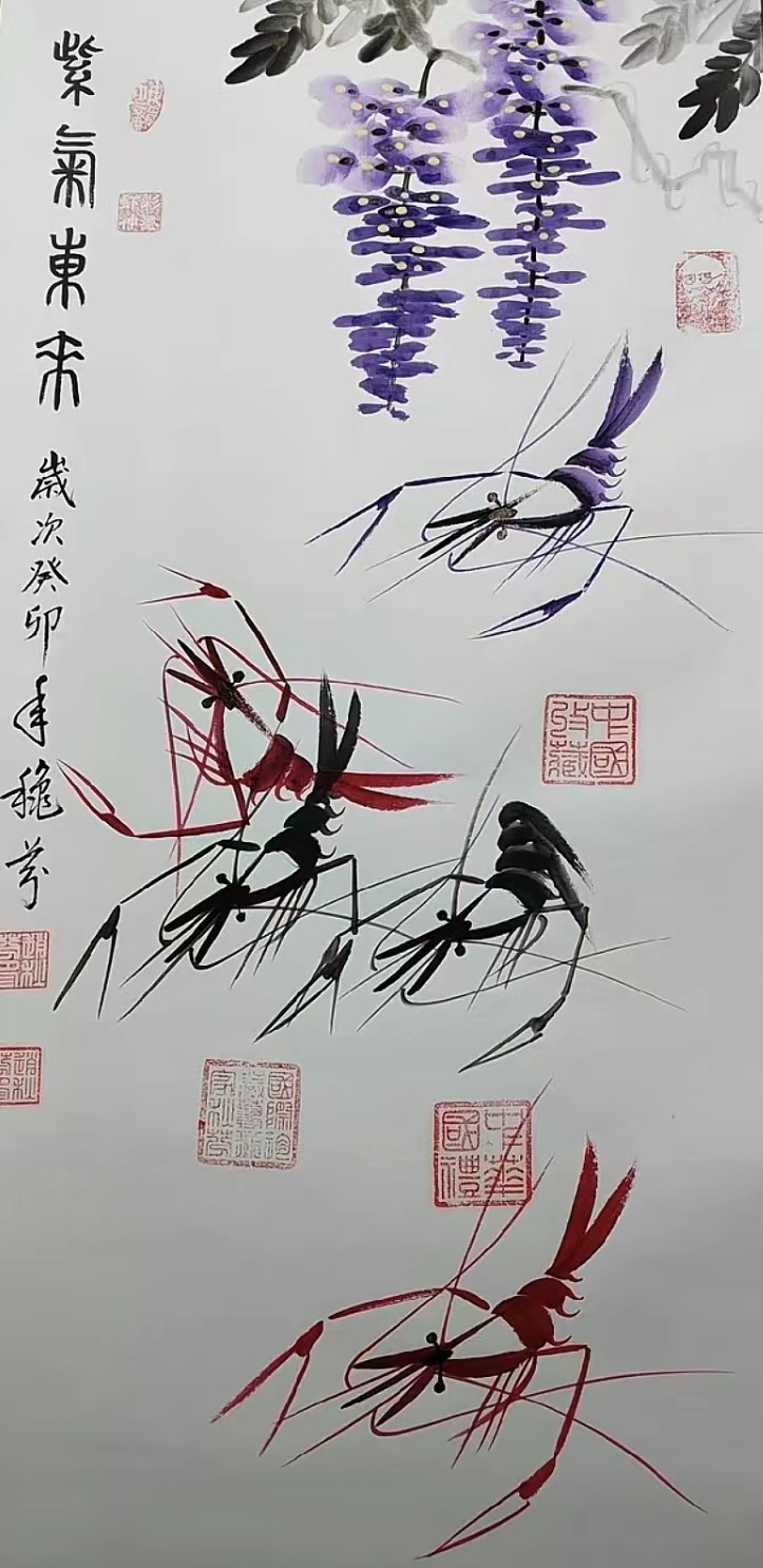 紫气东来:2010被国家博物馆收藏,被评为“当代彩墨虾神”,景德镇陶瓷独家签约版权 ,2024年7月即将上拍。