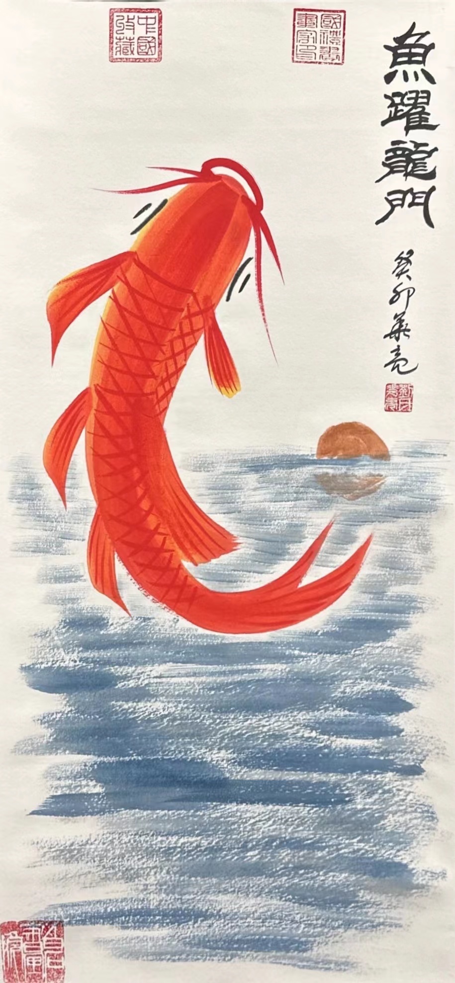 国画作品《鱼跃龙门》2012年春晚作为展播,清华大学校长王希勤28万收藏;2016年全国书画大赛中荣获一等奖。