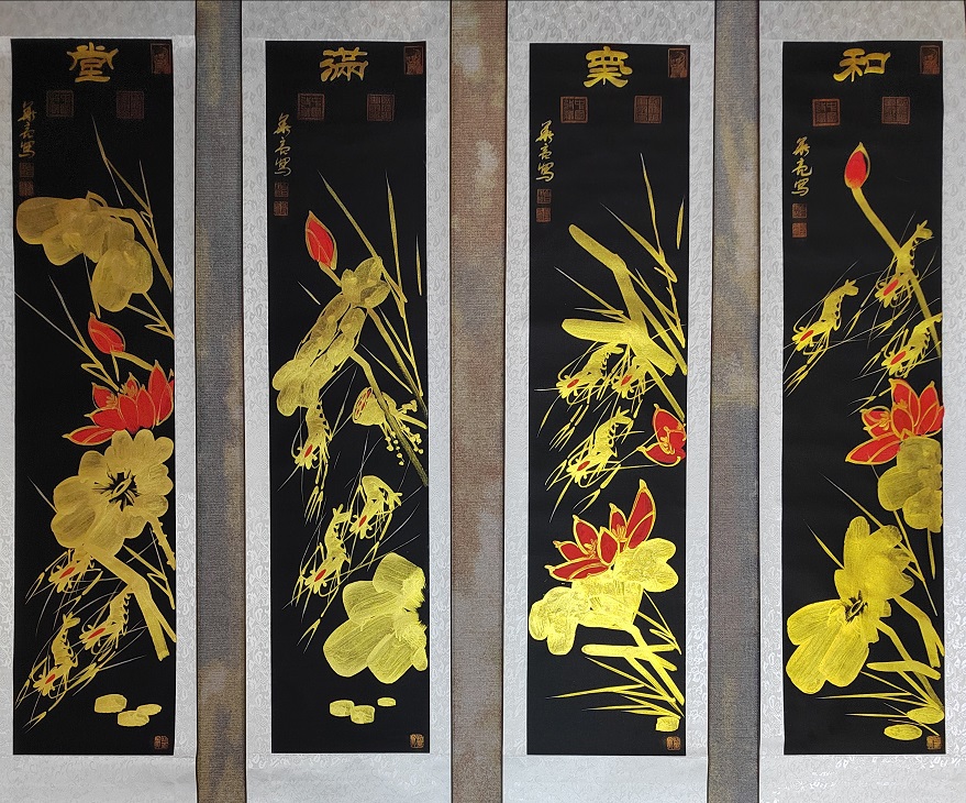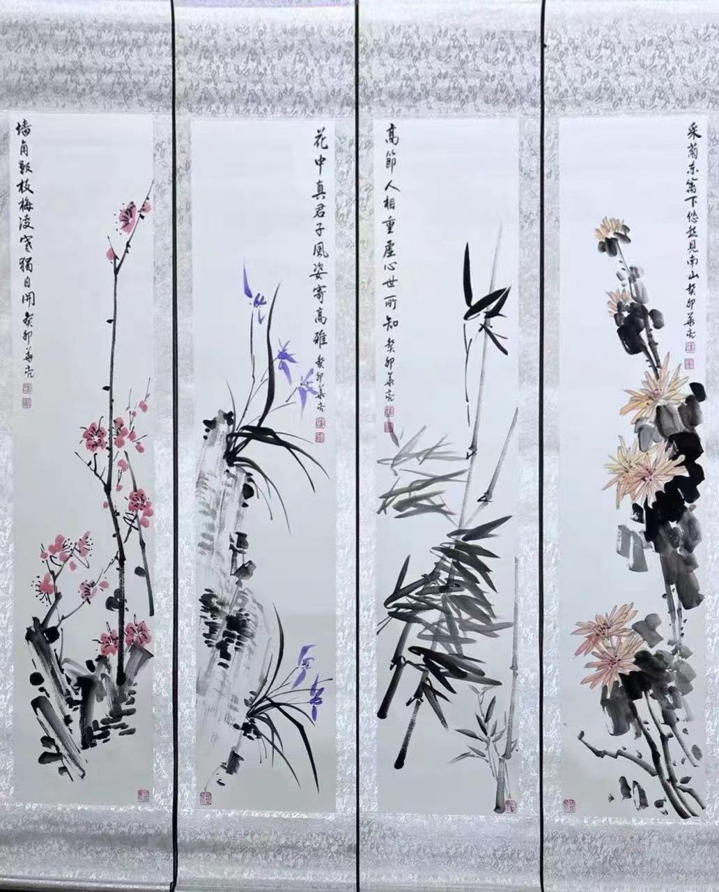 梅兰竹菊四条屏:2017年被收录中国近现代艺术十大名家作品集