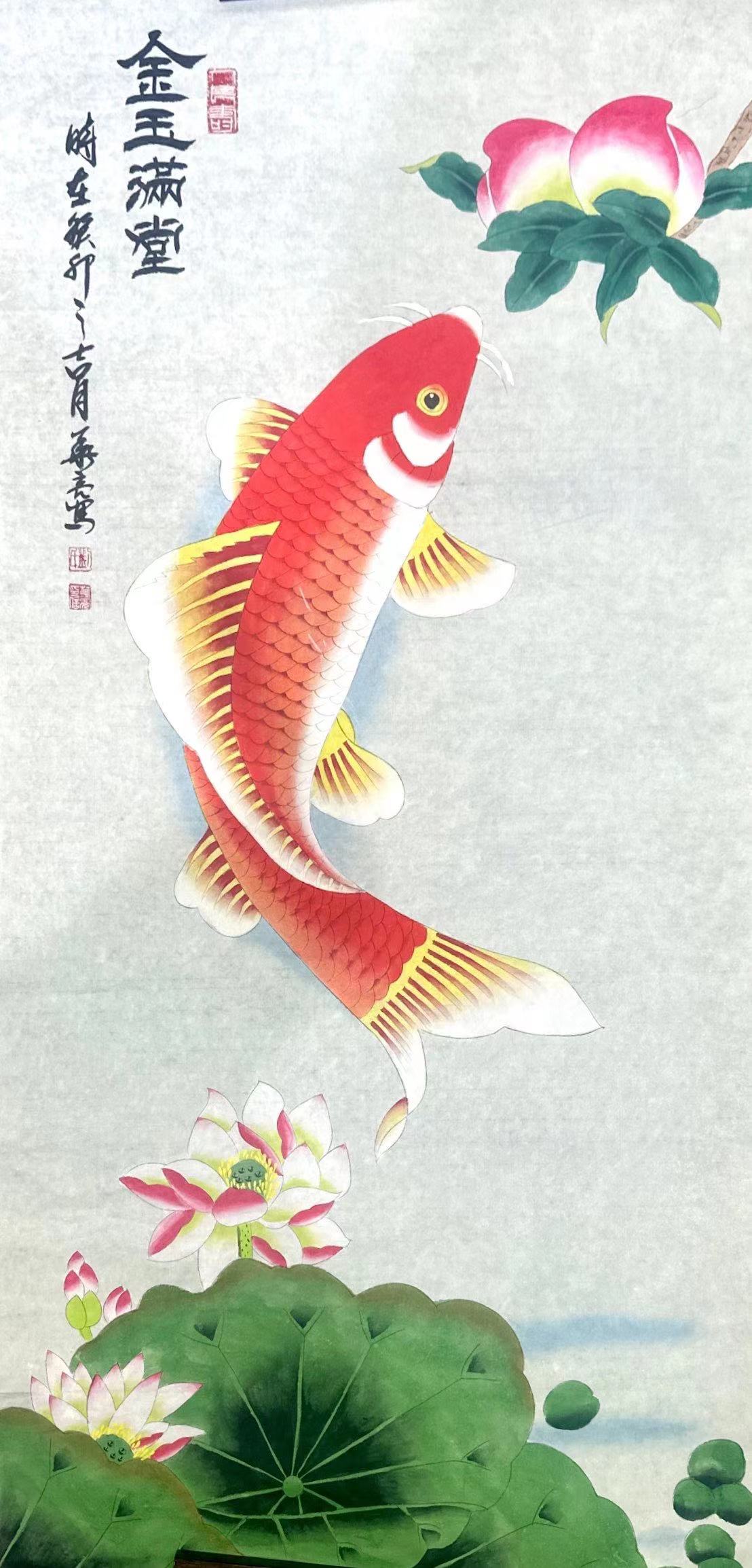 金玉满堂:2019年入选中国国画院绘画教材作品;工笔锦鲤荣获专利;中国美术馆收藏