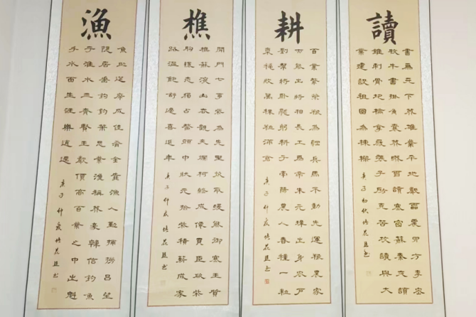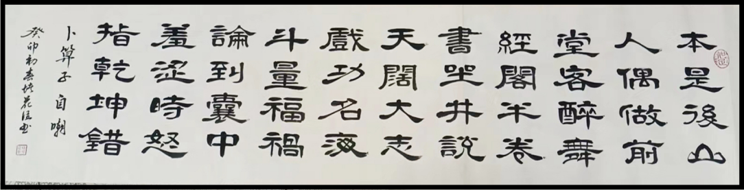 其书法作品蕴动静之美,端庄大方,飘逸灵动,形神兼备,秀美浑厚,超凡出神,笔画粗细相衬,苍劲有力。堵花臣先生为人憨厚耿直,集道德学识修养与一身,德艺双馨,正所谓书品及人品兼具。