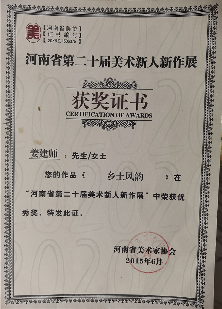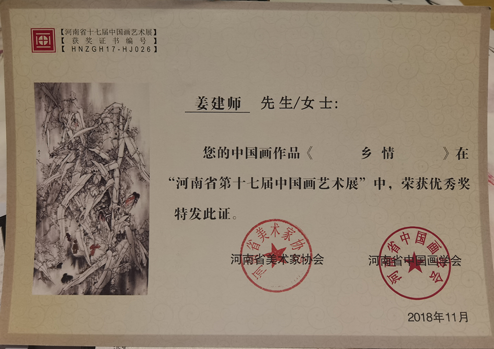 作品《乡土风韵》入编《中国当代艺术家名鉴》,《丰收图》参加中国写意画大赛并获“优秀奖”,《乡情》获河南省第十七届中国画艺术展“优秀奖”。2015年4月河南电视台专题报道。作品多次在国家、省级报刊发表,并被海内外知名人士收藏。